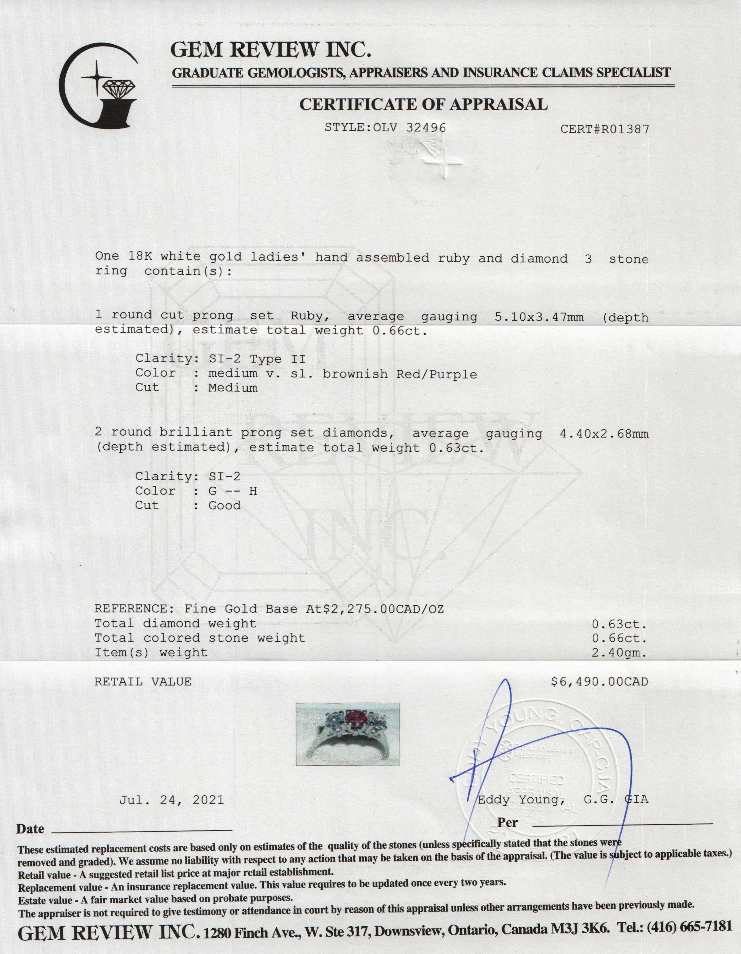 - 1 Round Cut Ruby Weighing Approximately 0.66 ct.