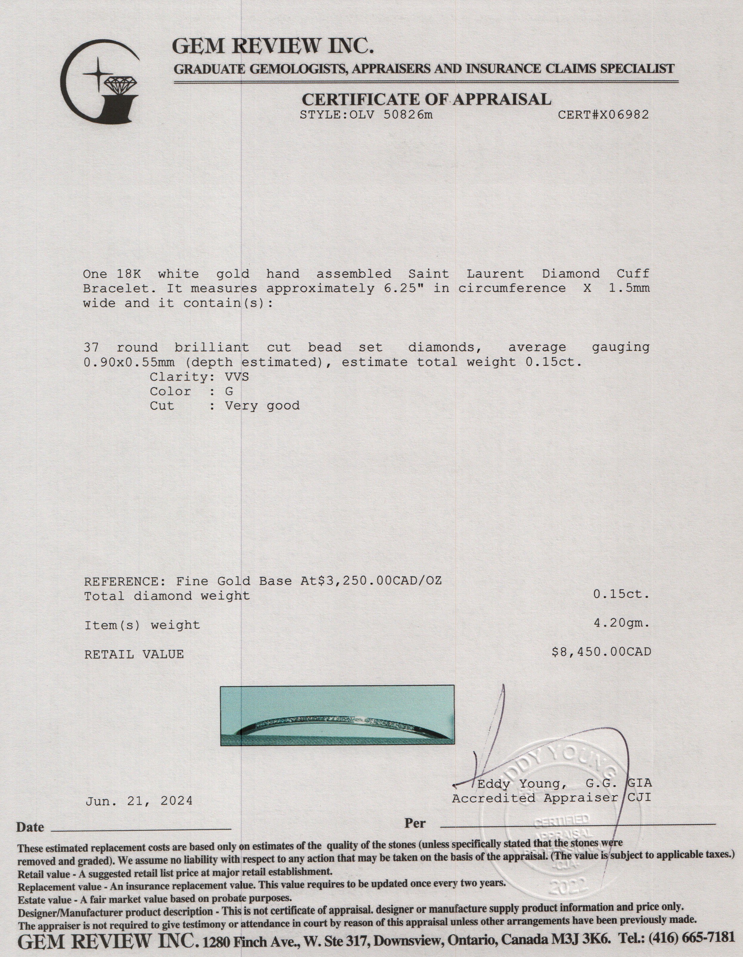 18k White Gold Diamond Cuff Bracelet w/ Box
