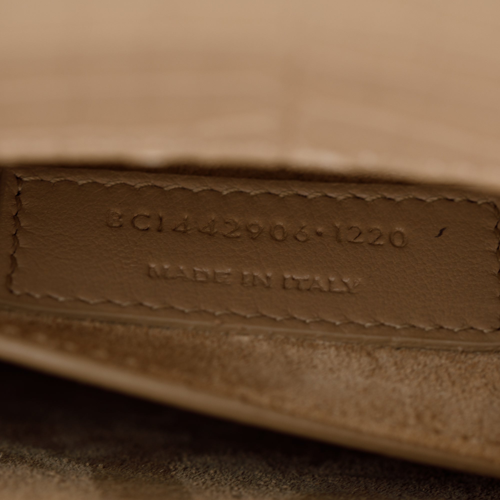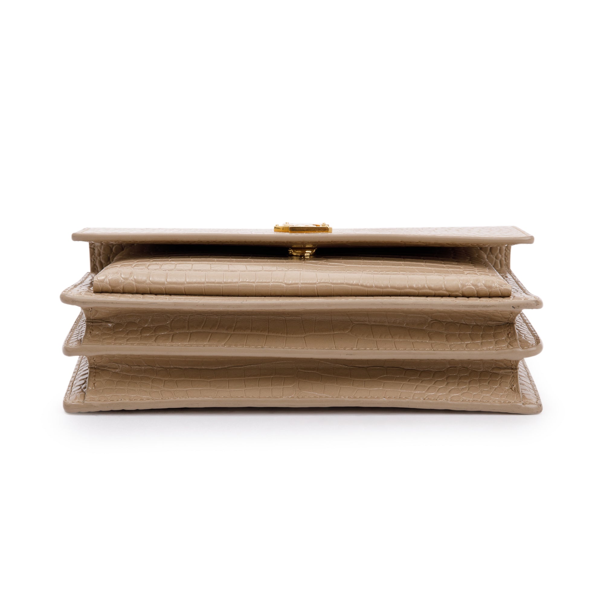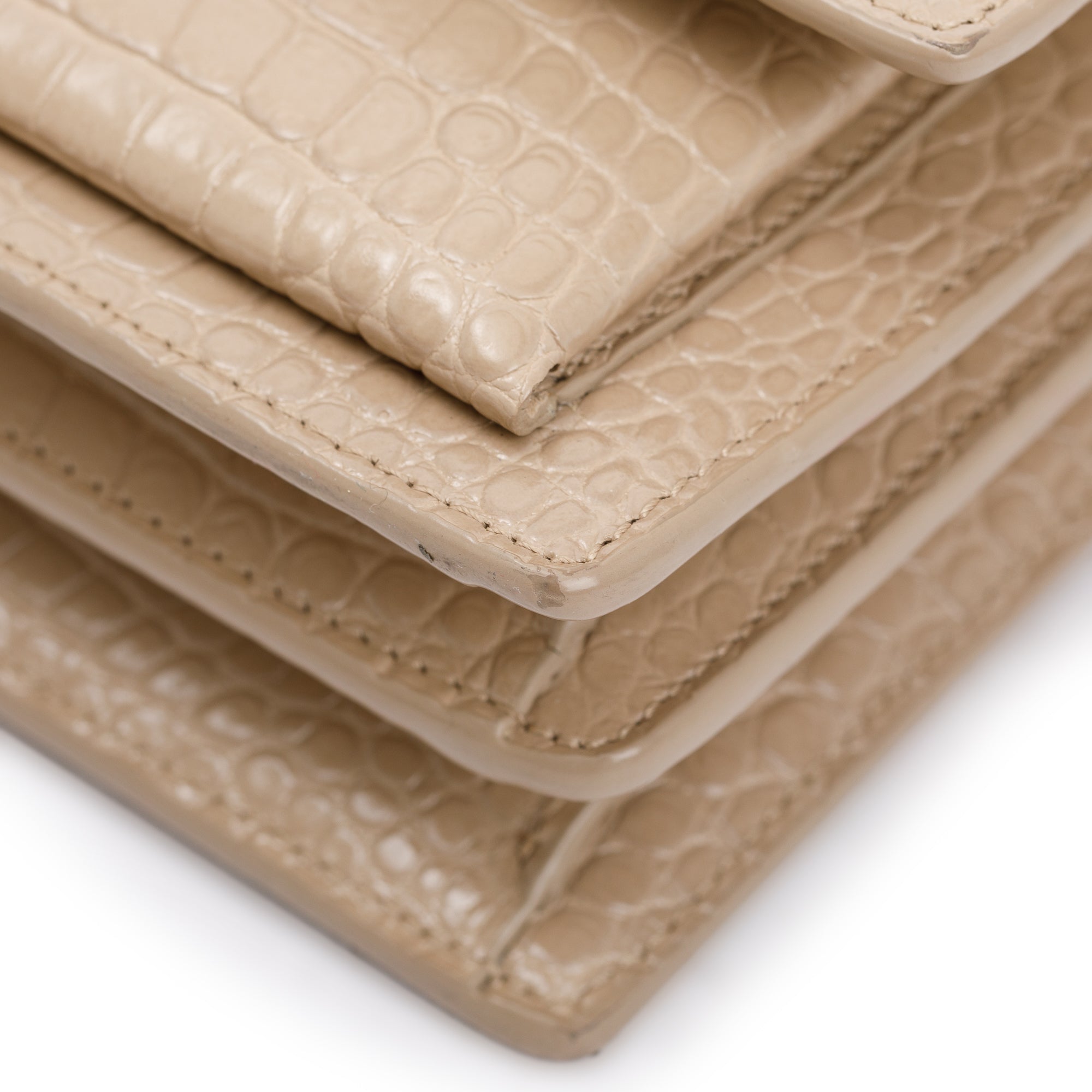 2020 Beige Crocodile Embossed Leather Medium Sunset Bag w/ Box
