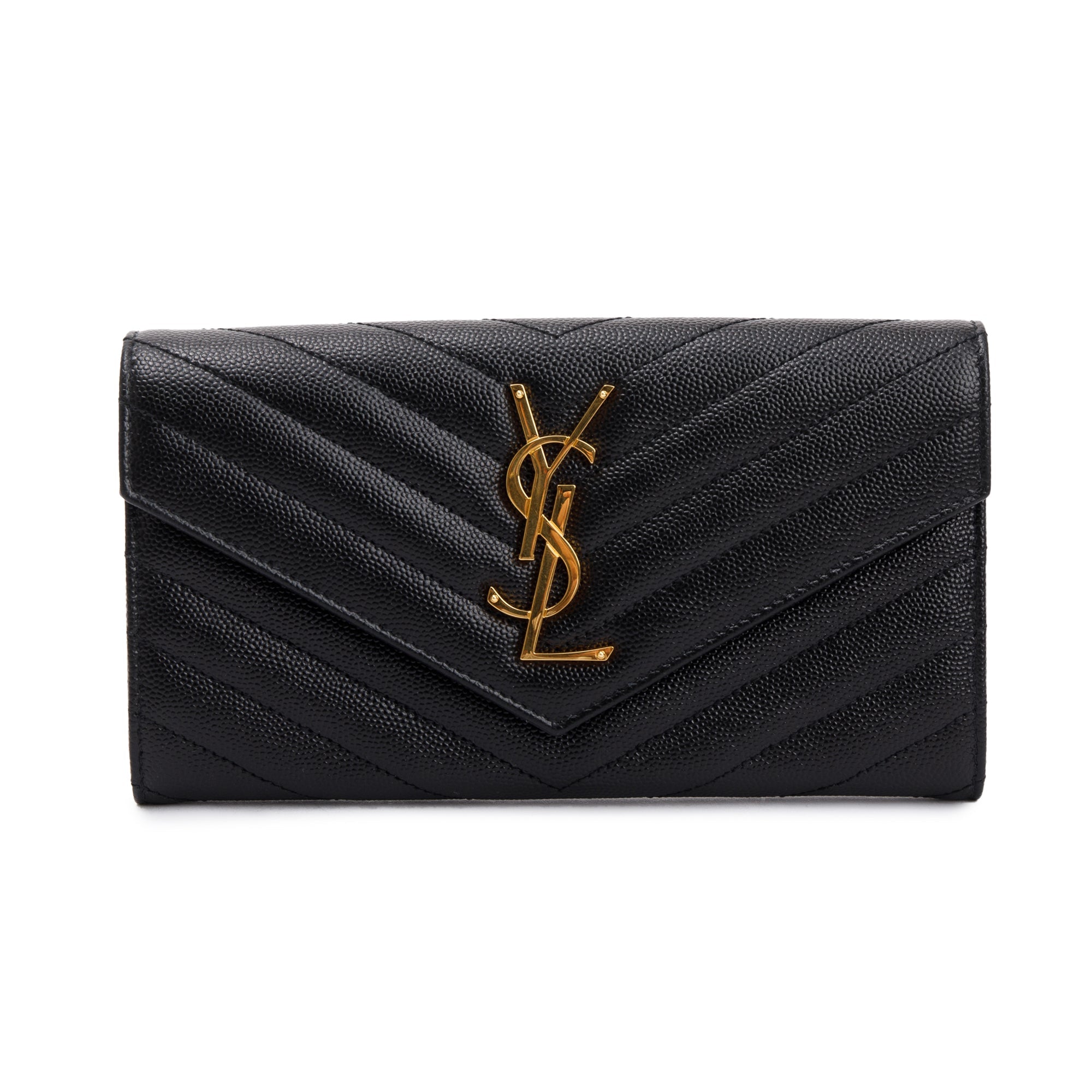 2021 Black Grain De Poudre Leather Cassandre Matelasse Large Flap Wallet w/ Box