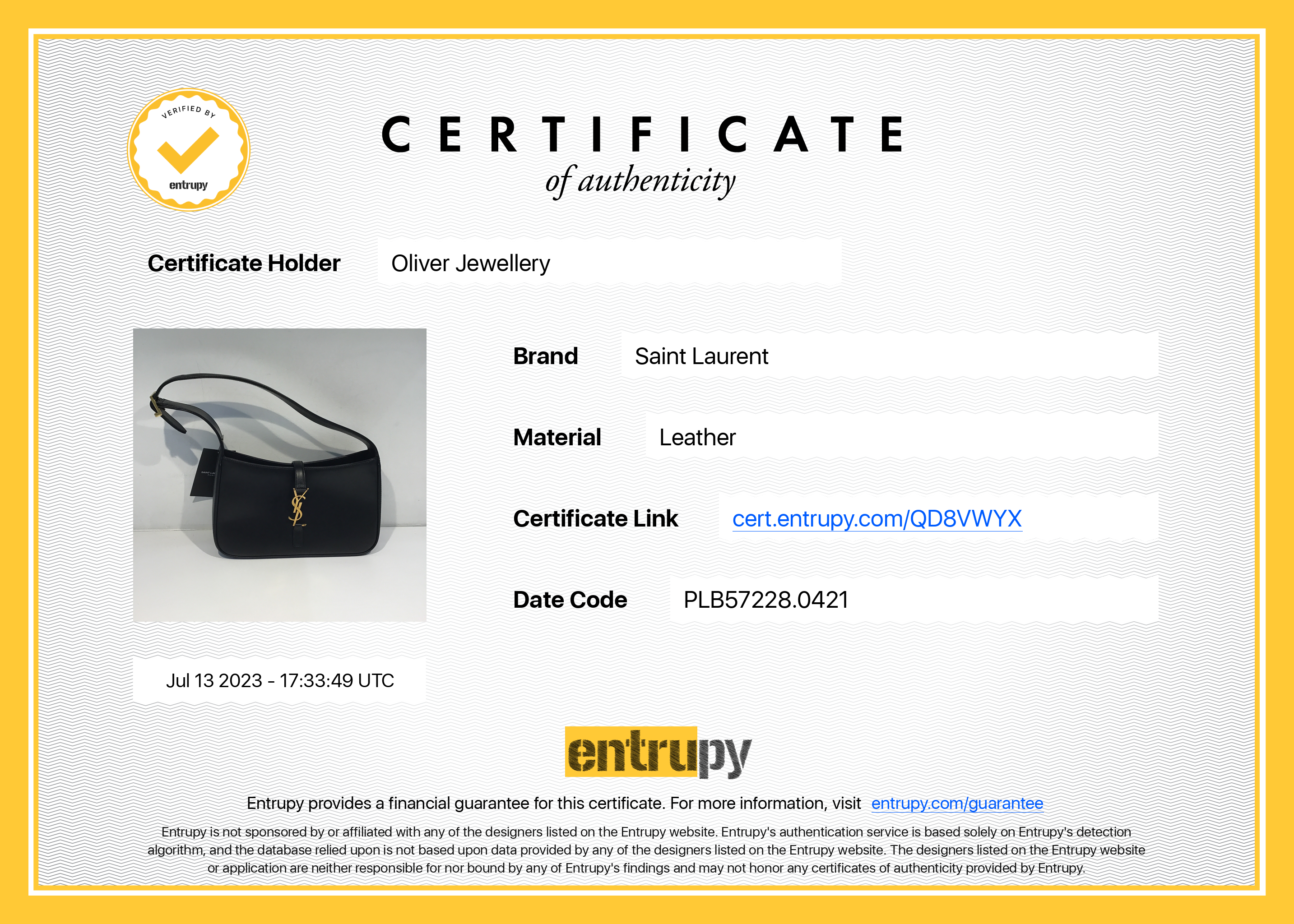 Included Items: Original Saint Laurent Dust Bags, Tags, Booklet and Entrupy Certificate of Authenticity #: QD8VWYX