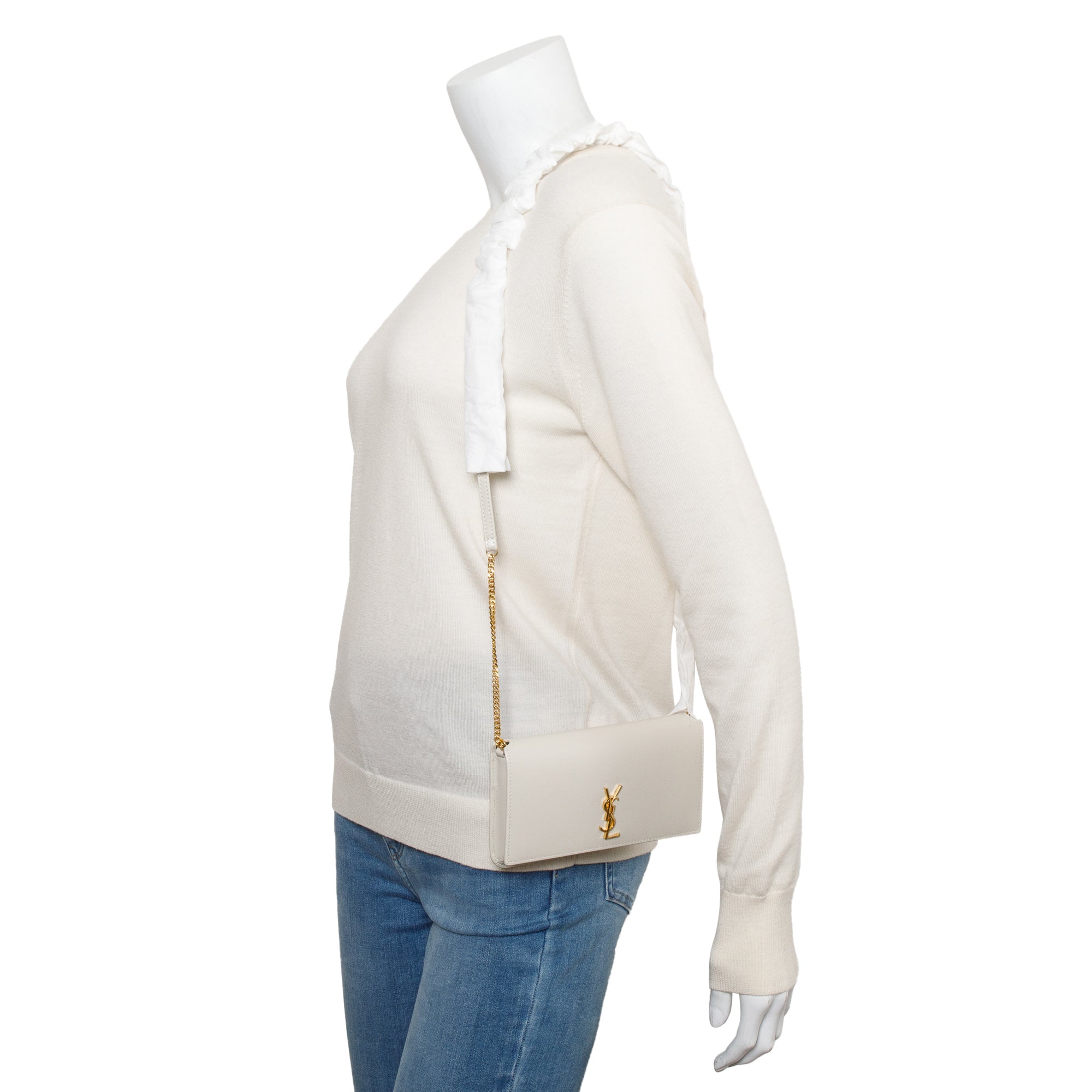 Saint Laurent 2023 White Smooth Leather Cassandre Phone Holder Bag w/ Box