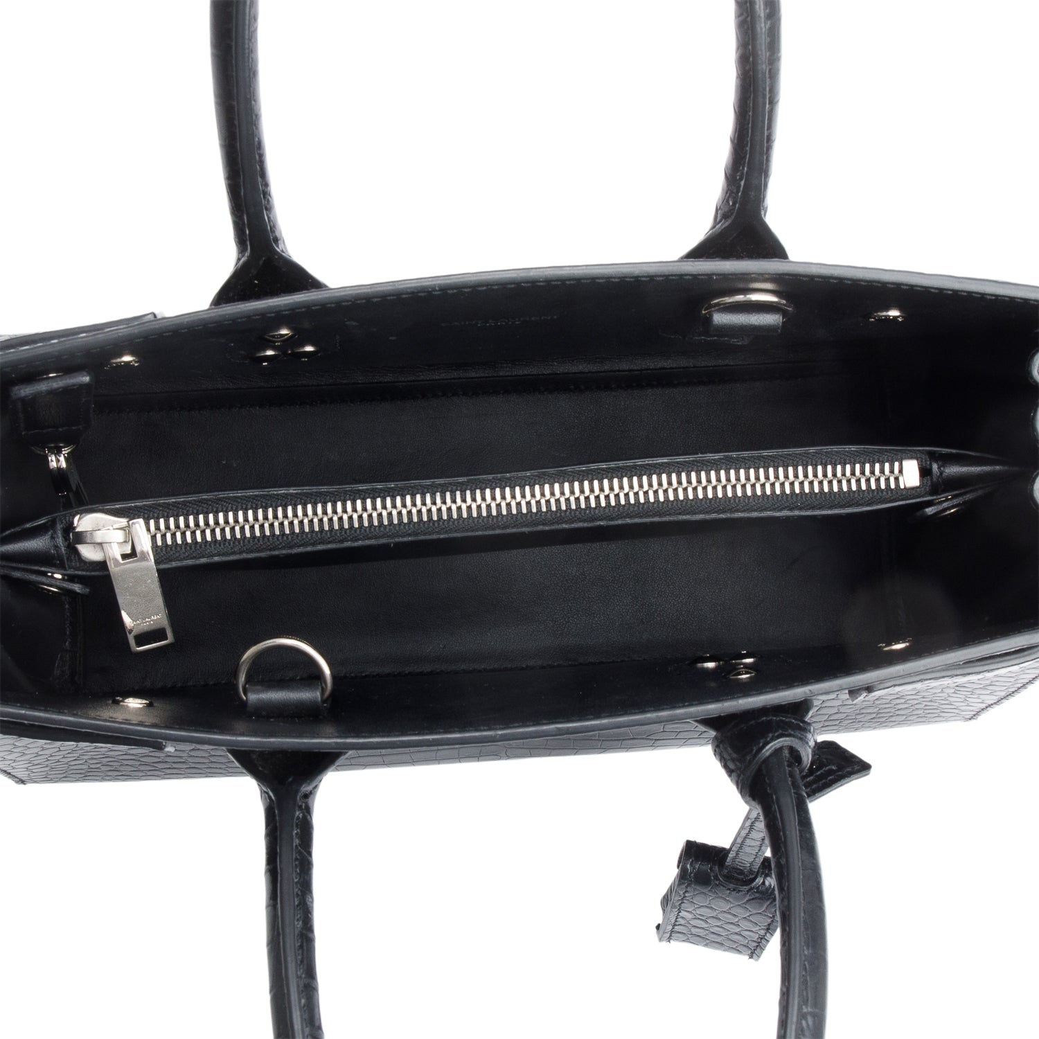 Black Crocodile Embossed Leather Baby Sac De Jour w/ Strap & Pouch