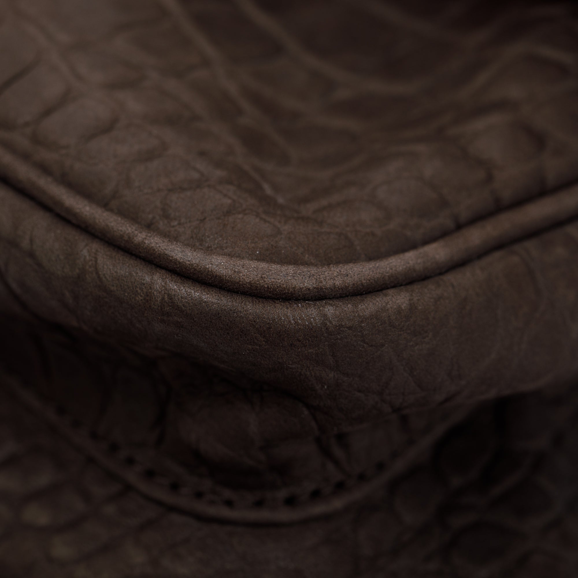 Brown Crocodile Embossed Nubuck Medium Niki Shoulder Bag