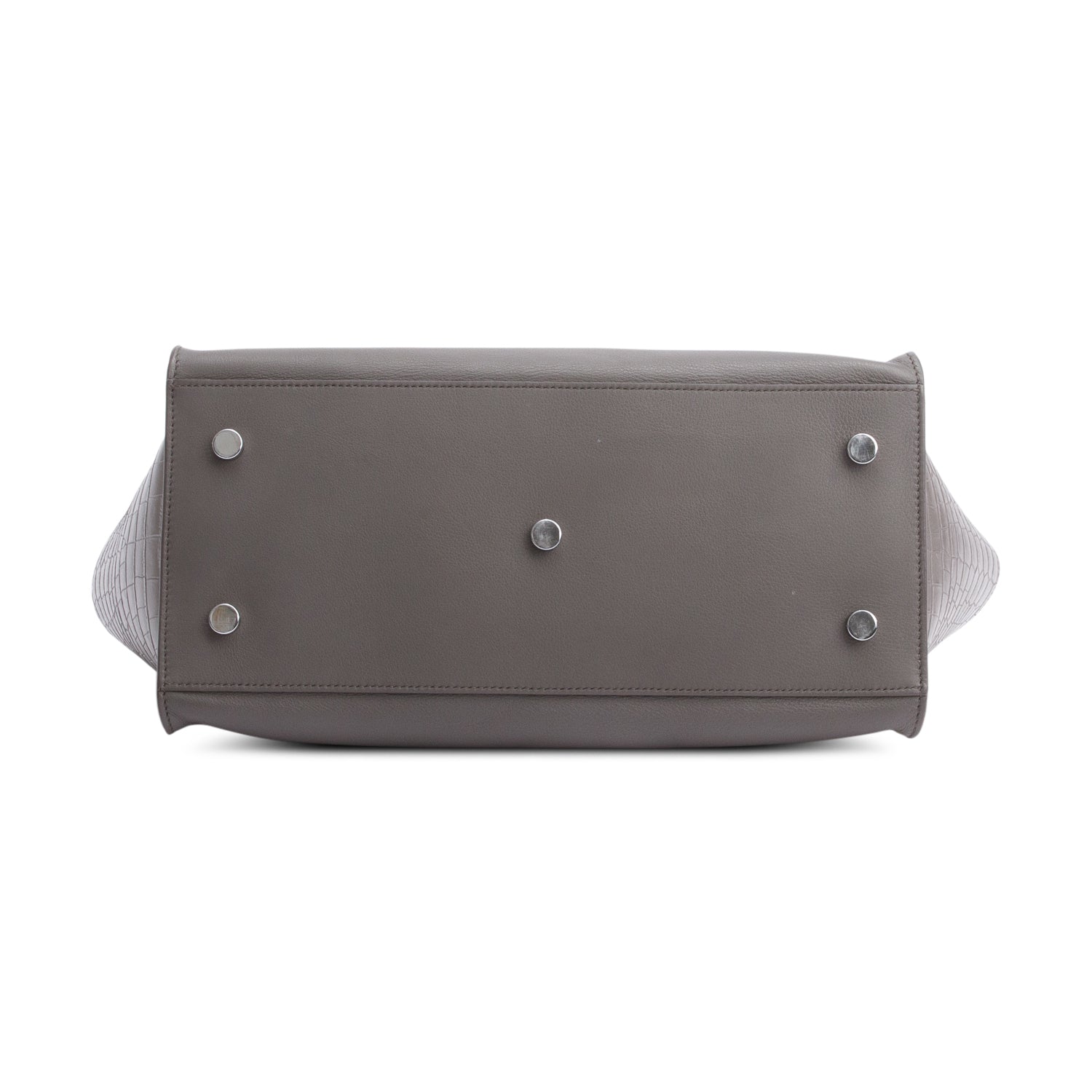 Grey Calfskin and Croc Embossed Leather Downtown Baby Cabas Tote Bag w/ Strap