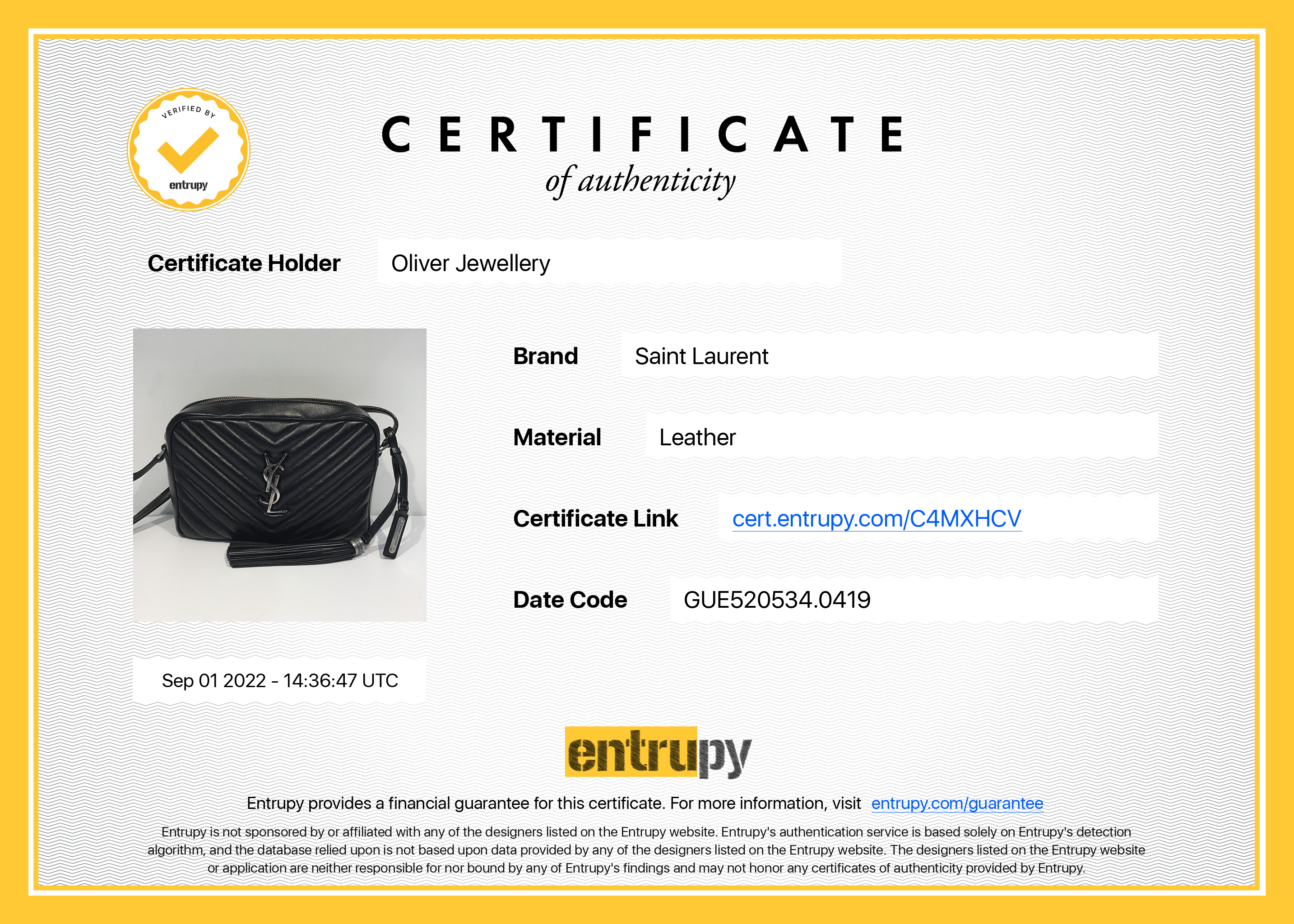 Included Items: Original Saint Laurent Box, Dust Bag, Receipt, Tags, Booklet and Entrupy Certificate of Authenticity #: C4MXHCV