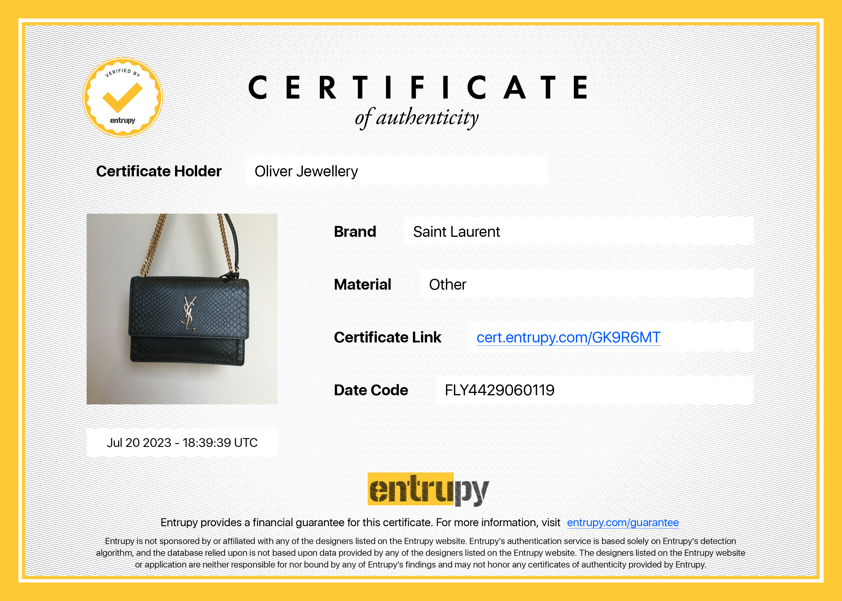 Included Items: Saint Laurent Dust Bag & Entrupy Certificate of Authenticity #: GK9R6MT