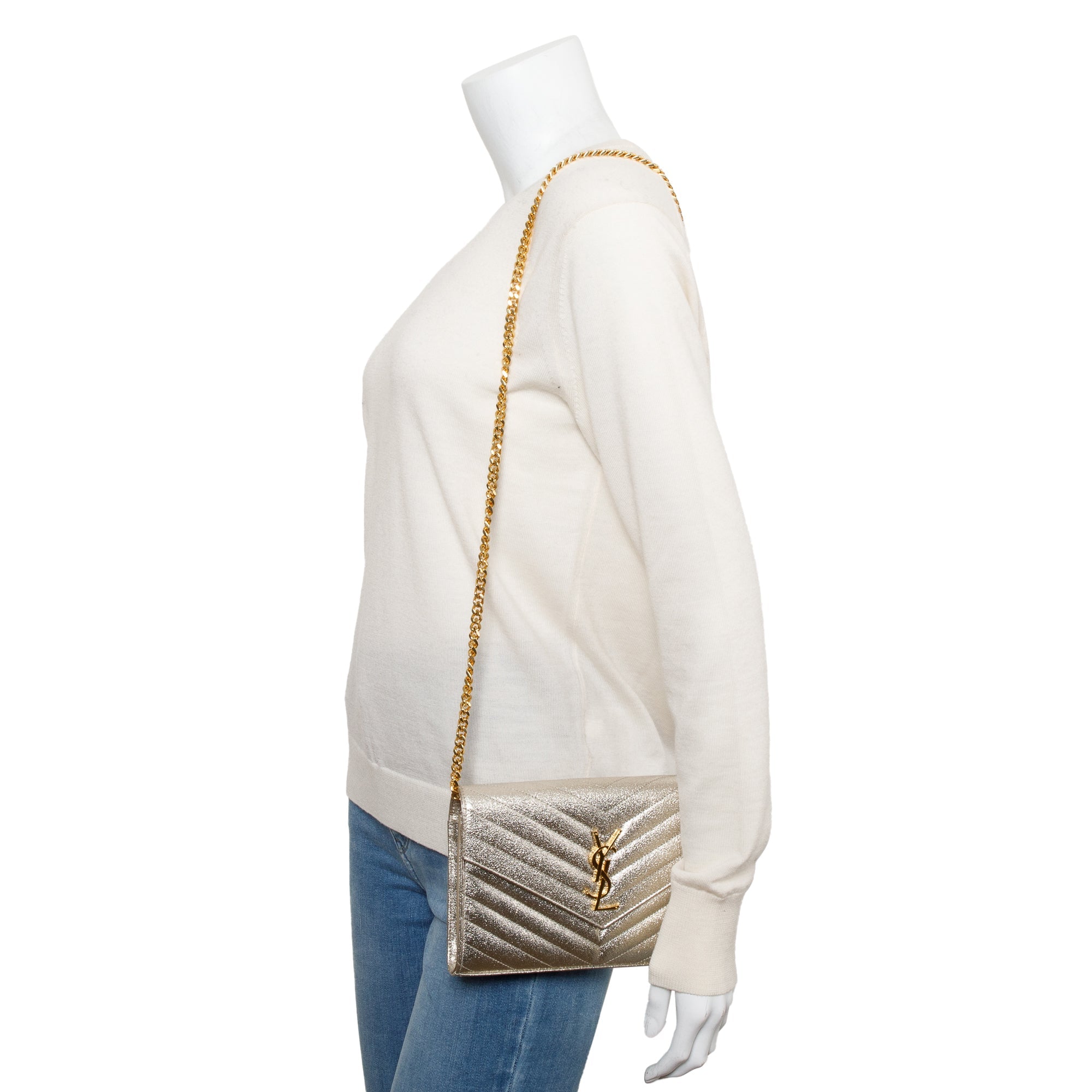 Metallic Grain De Poudre Leather Cassandre Matelasse Chain Wallet w/ Box