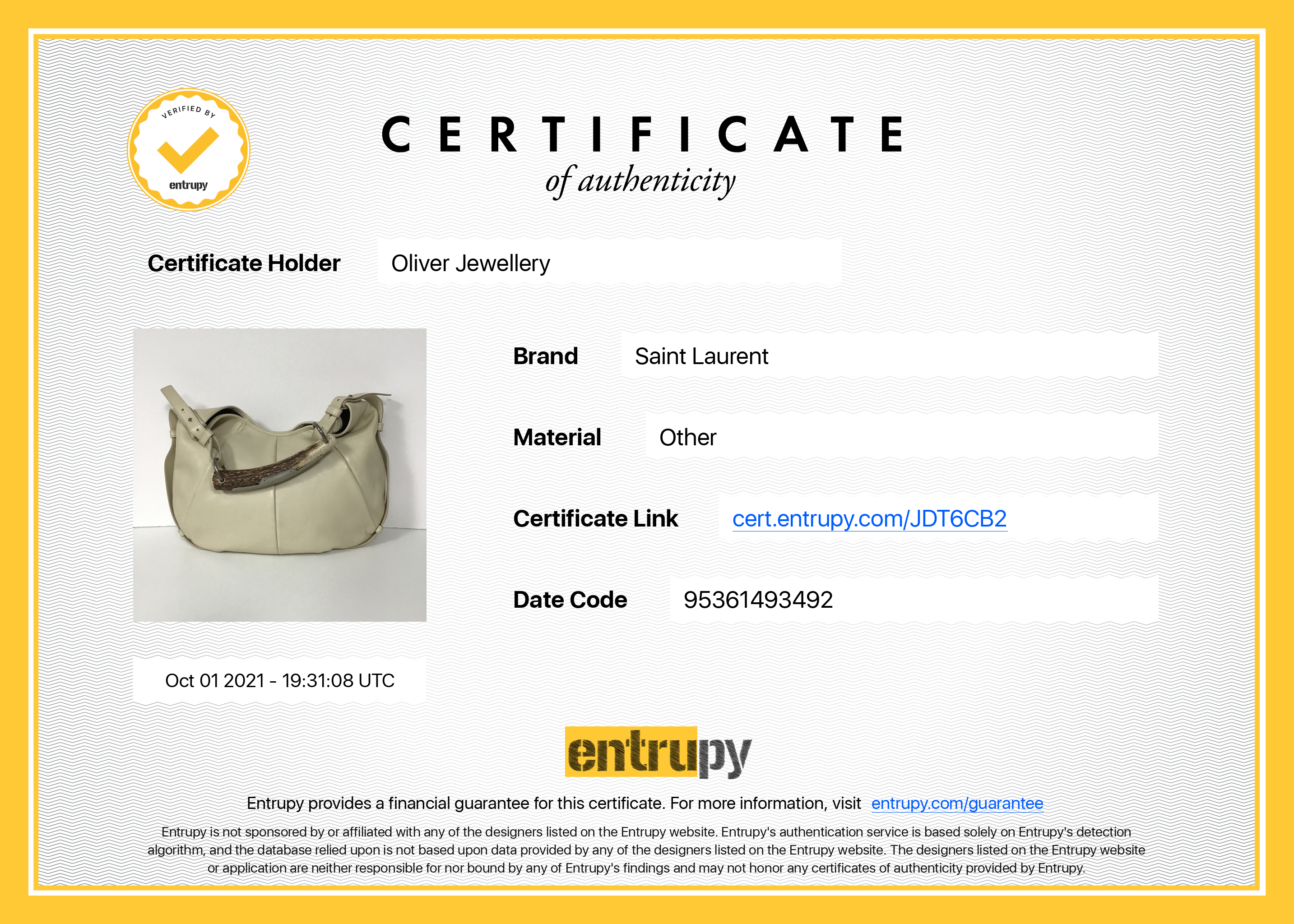 Included Items: Original Saint Laurent Dust Bag, Tag, & Entrupy Certificate of Authenticity #: JDT6CB2