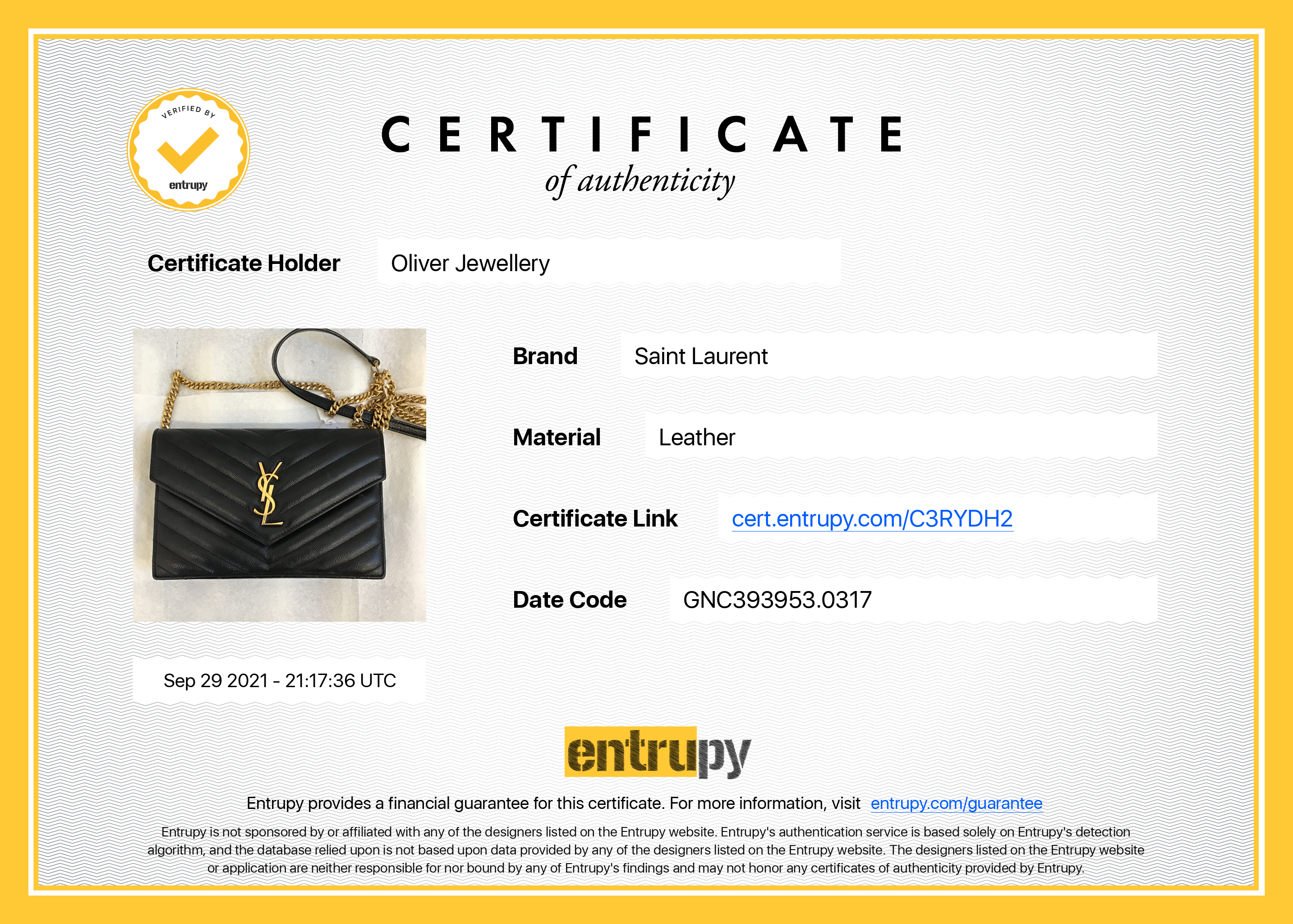 Included Items: Original Saint Laurent Box, Dust Bag & Entrupy Certificate of Authenticity #: C3RYDH2