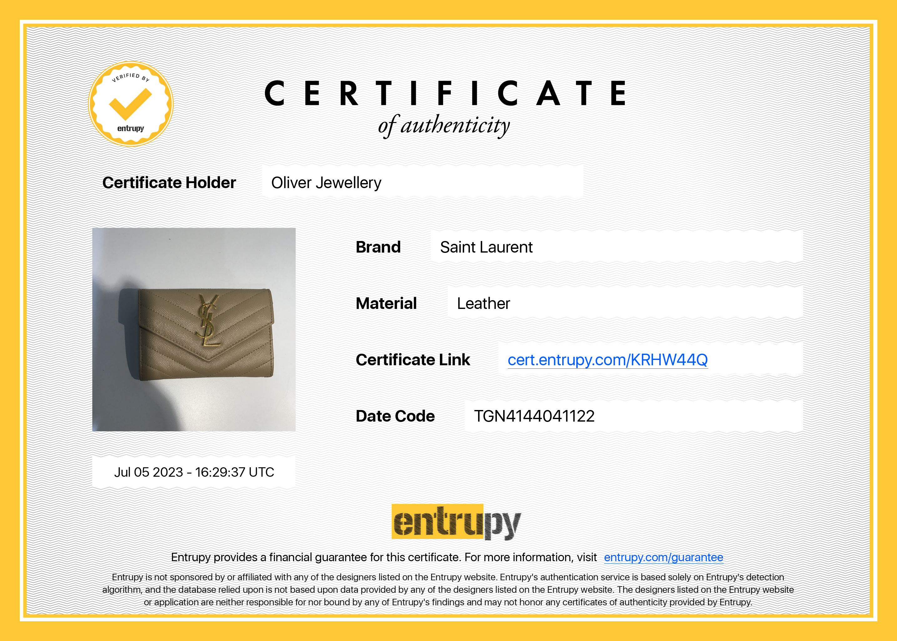 Included Items: Original Saint Laurent Box, Dust Bag, Booklet & Entrupy Certificate of Authenticity #: KRHW44Q