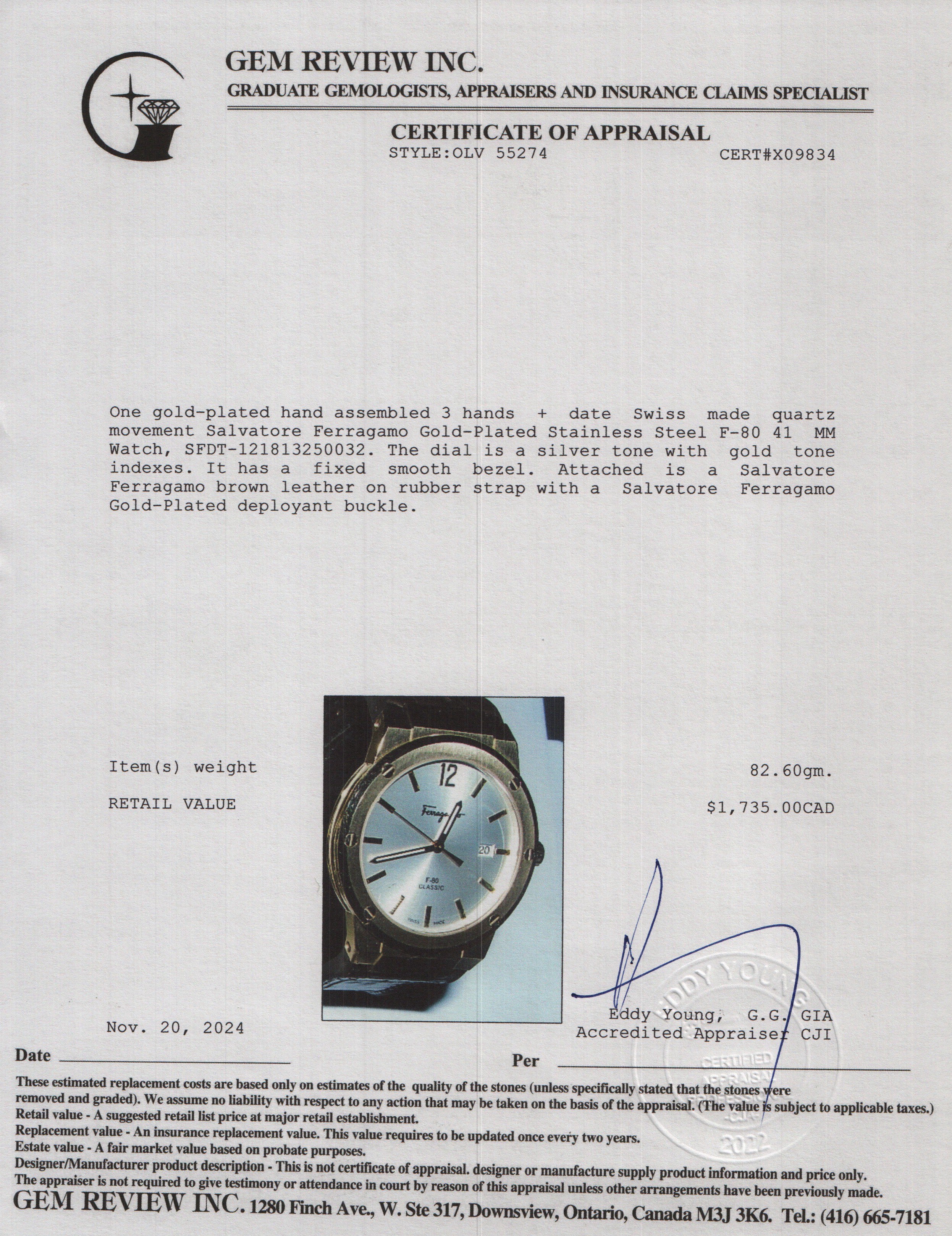 Salvatore Ferragamo Gold-Plated Stainless Steel F-80 41 MM Watch