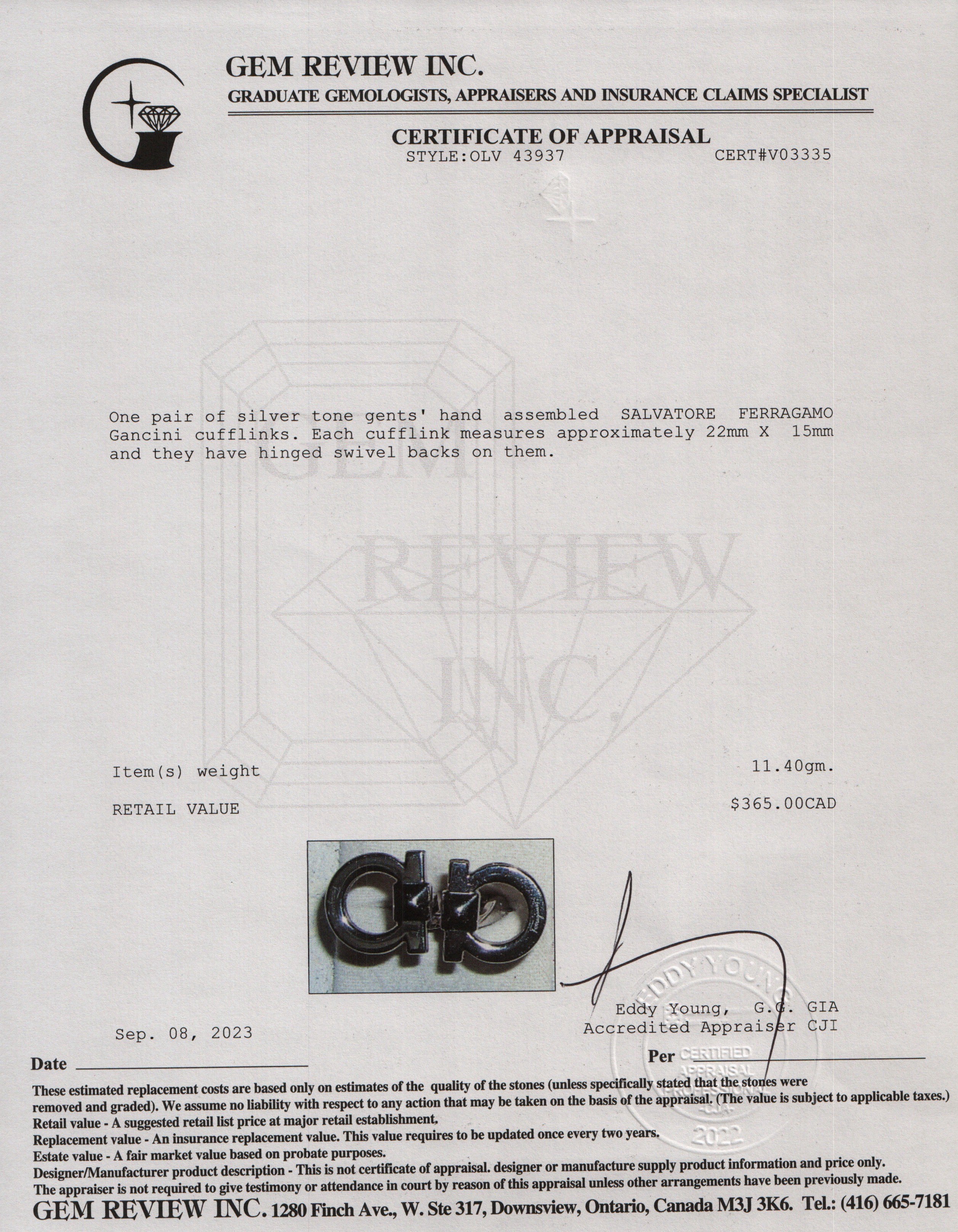 Salvatore Silver Metal Gancini Cufflinks w/ Box