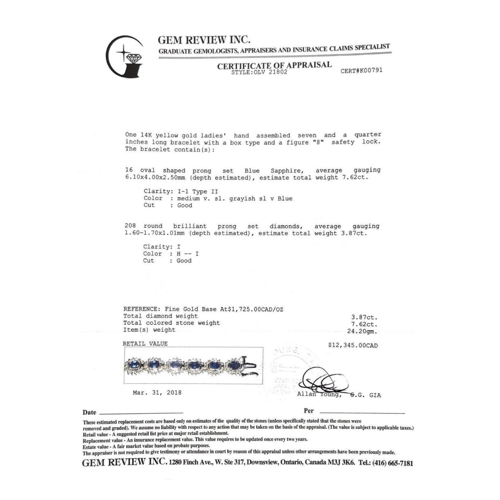 Sapphire and Diamond Bracelet in 14k Yellow Gold