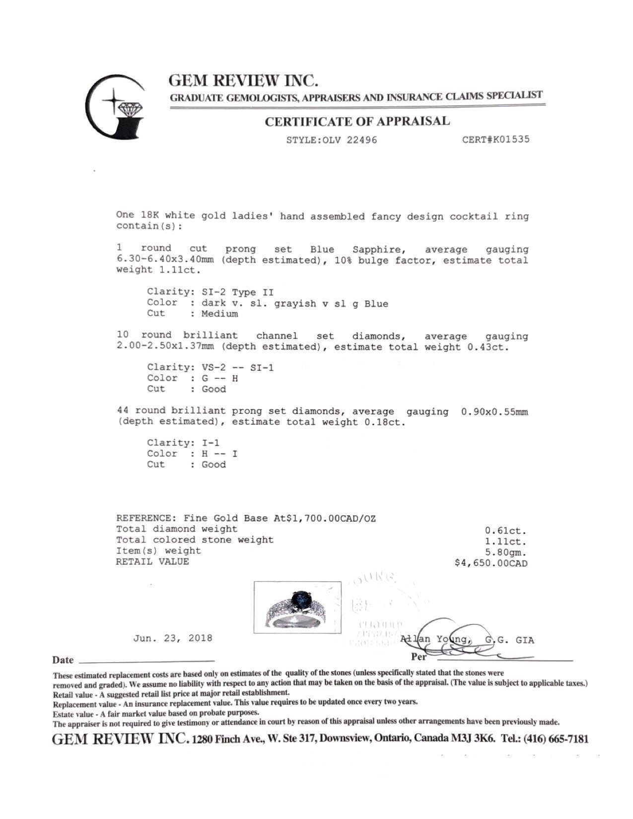 - 1 Round Cut Sapphire Weighing Approximately 1.11 ct.