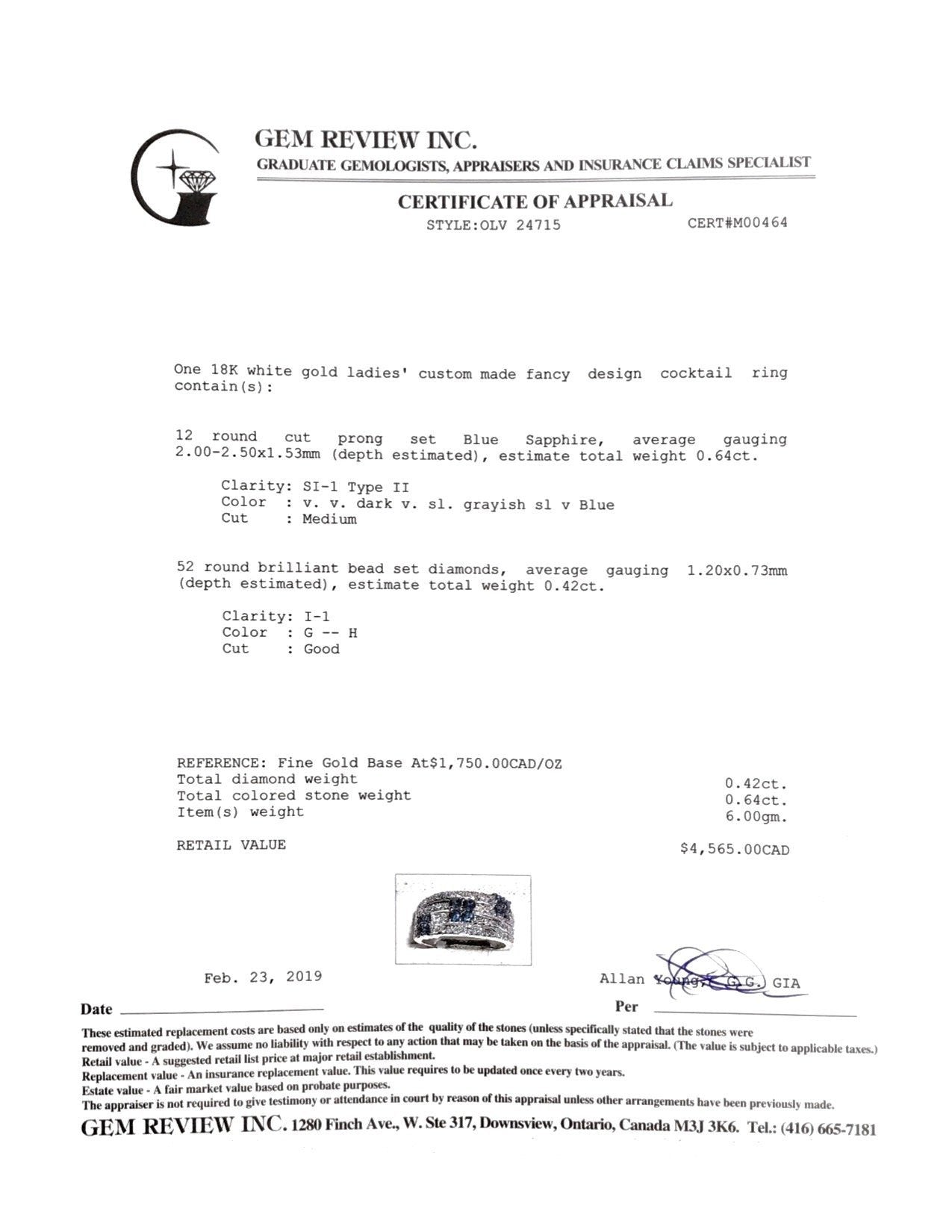 - 12 Round Cut Blue Sapphires Totalling Approximately 0.64 ct.