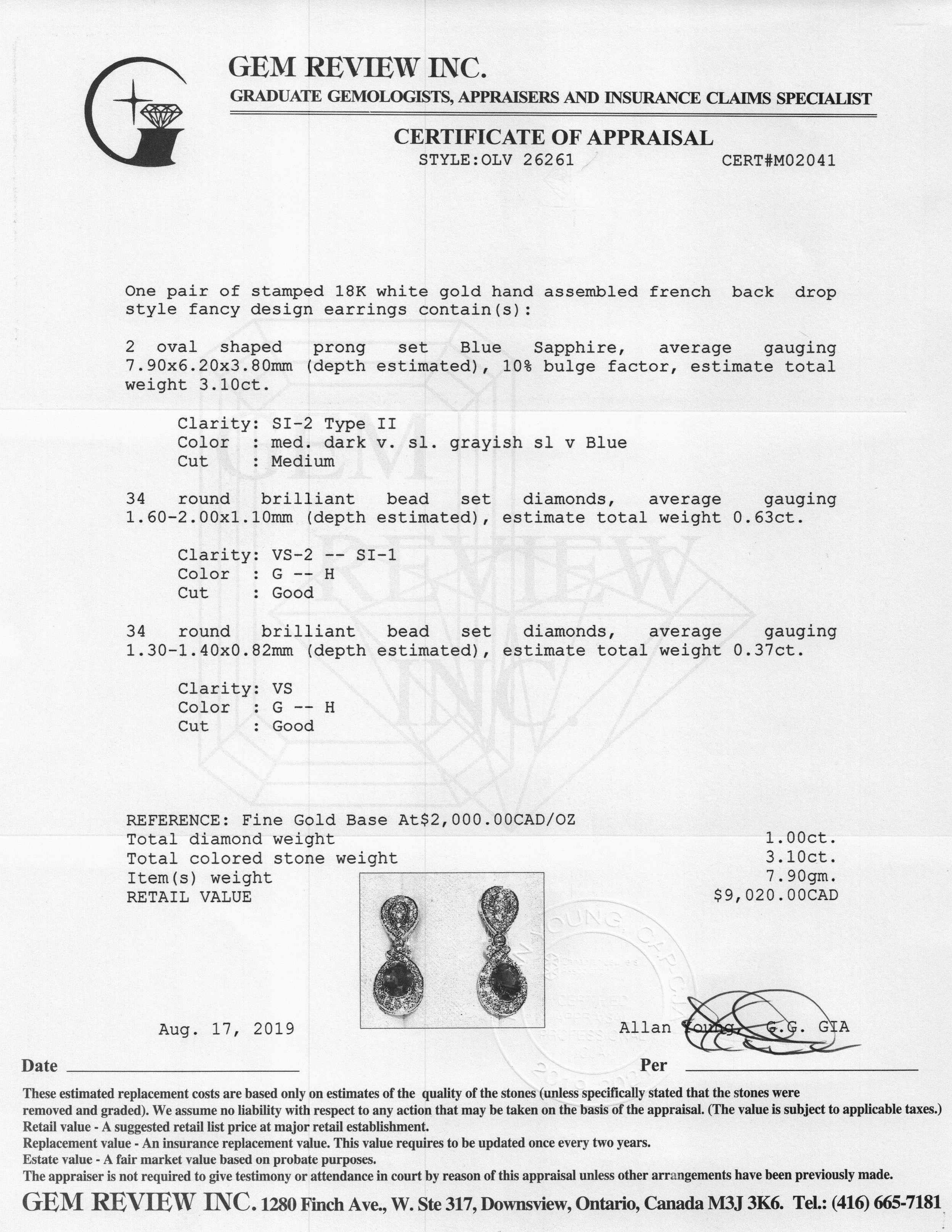 - 2 Oval Shaped Blue Sapphires Totalling Approximately 3.10 ct.