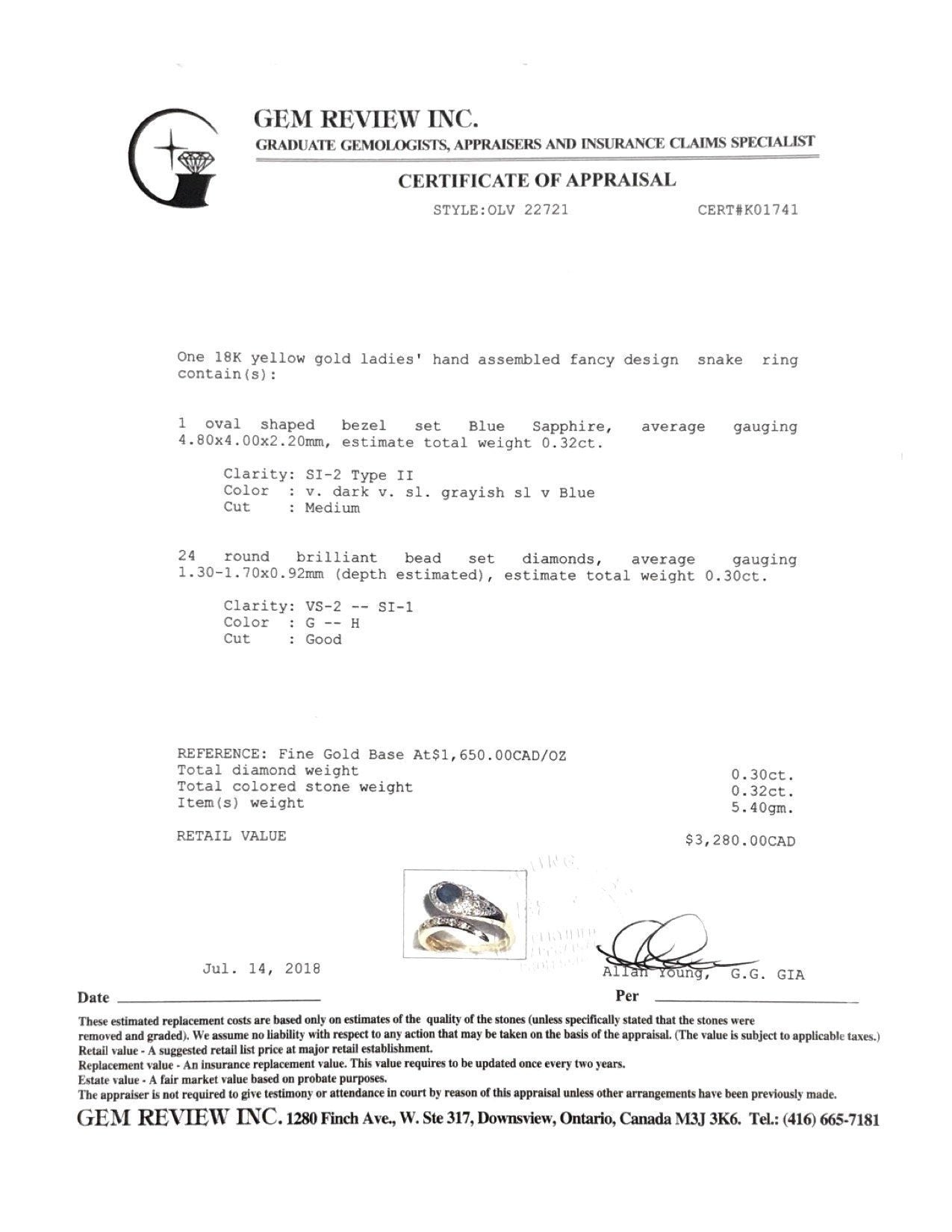 - 1 Oval Shaped Bezel Set Blue Sapphire Weighing Approximately 0.32 ct.