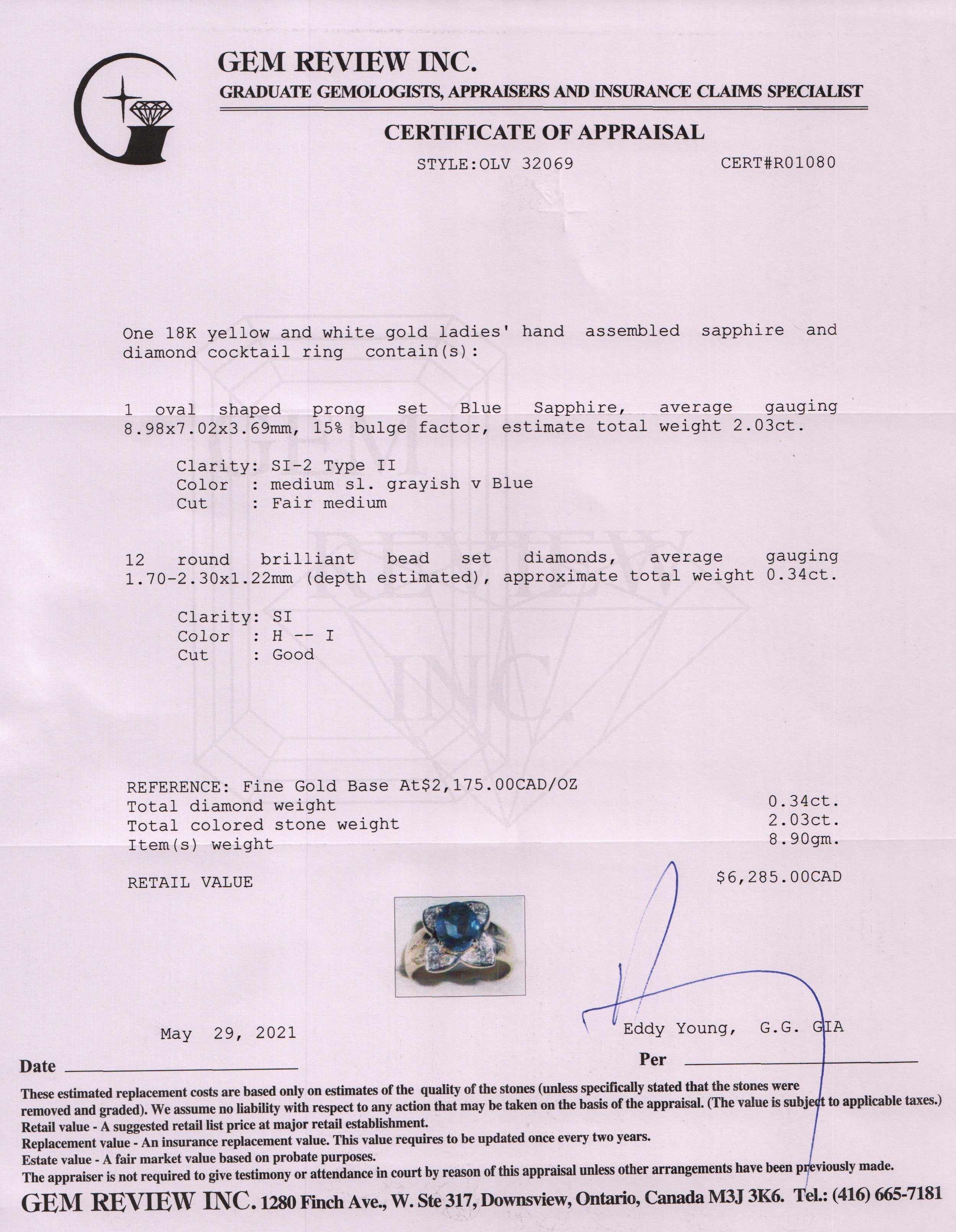 - 1 Oval Shaped Blue Sapphire Weighing Approximately 2.03 ct.