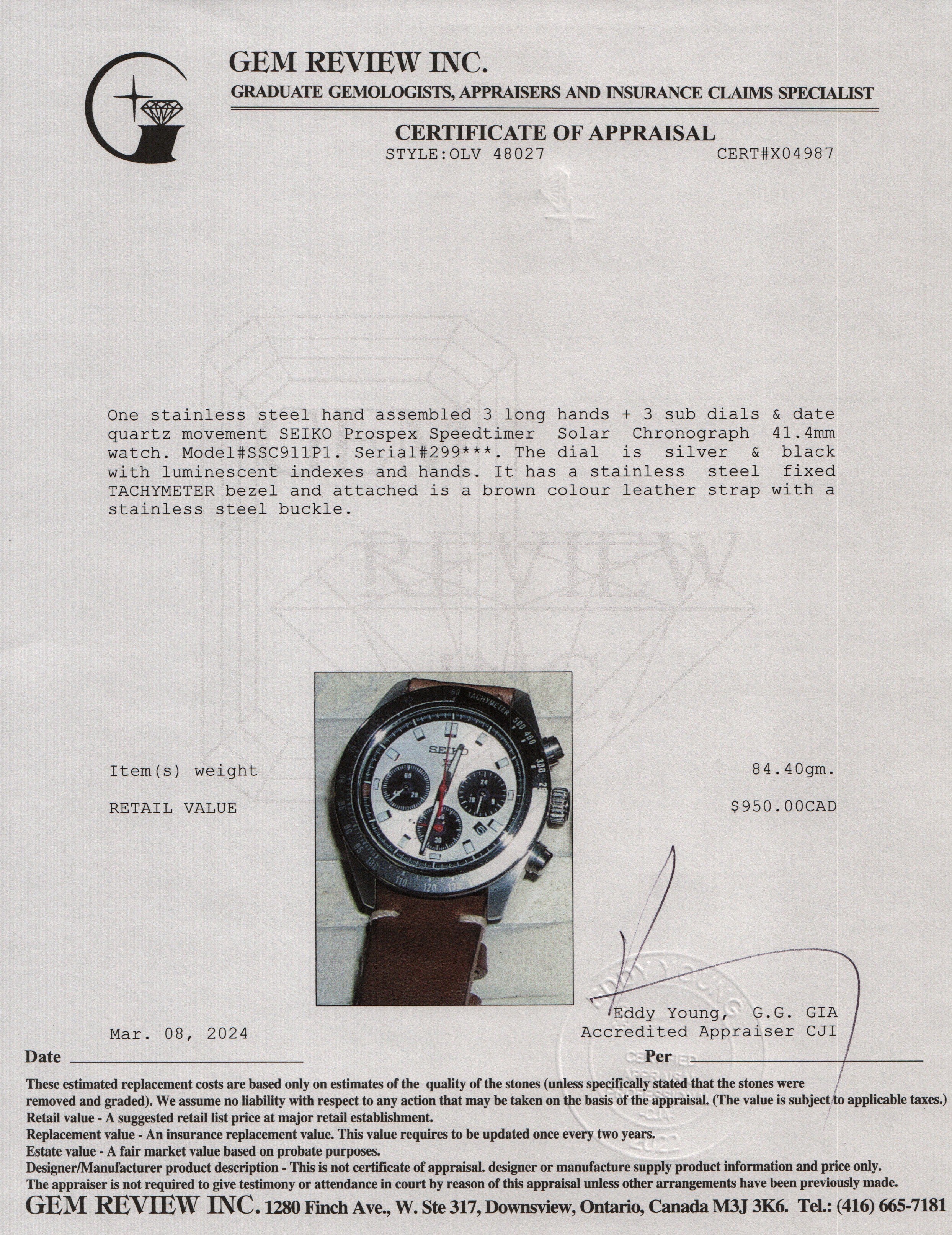 Stainless Steel Prospex Speedtimer 41.4 MM Solar Chronograph Watch w/ Box, Papers & Extra Strap