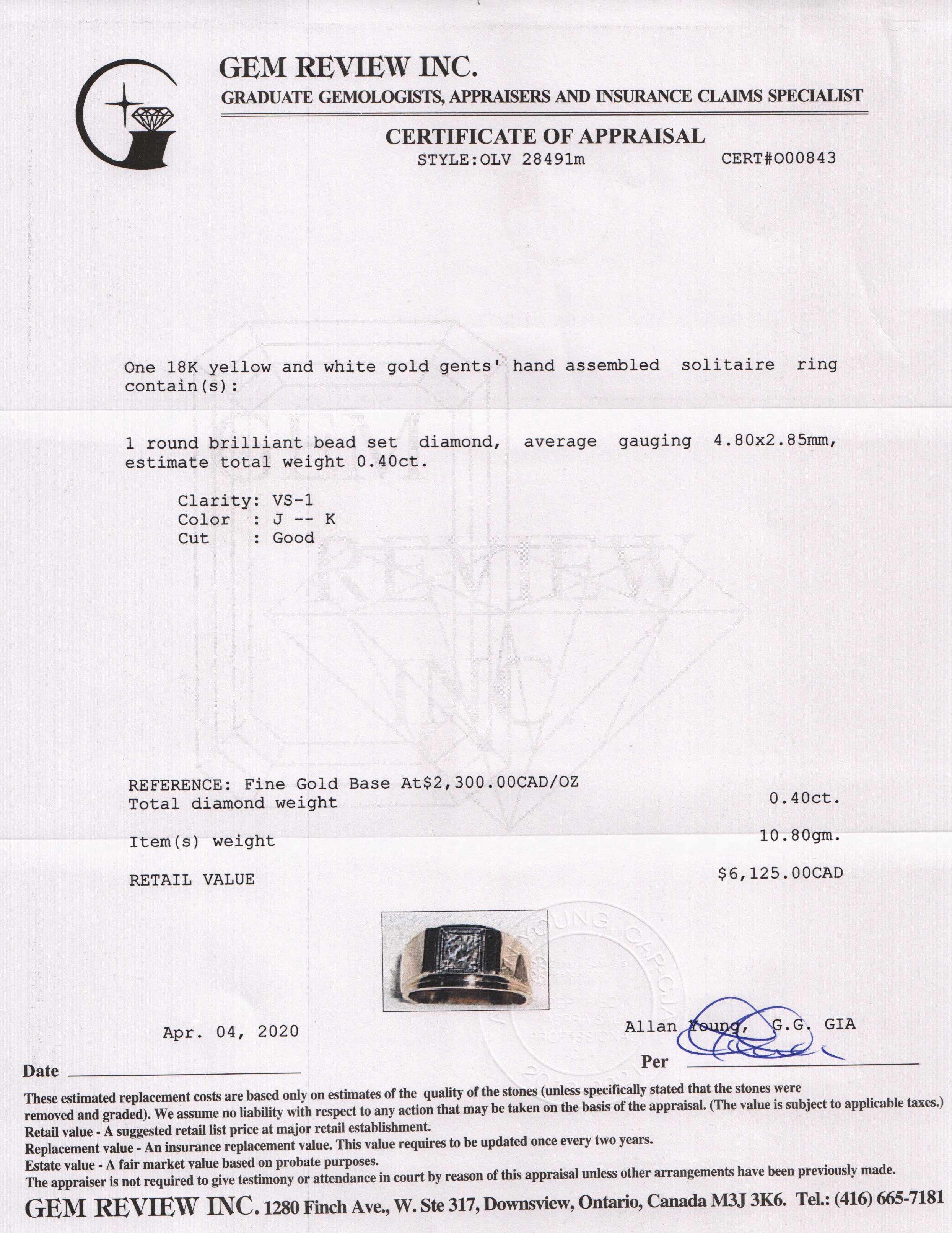 - 1 Round Brilliant Cut Diamond Weighing Approximately 0.40 ct. of VS1 Clarity, J-K Colour, Good Cut