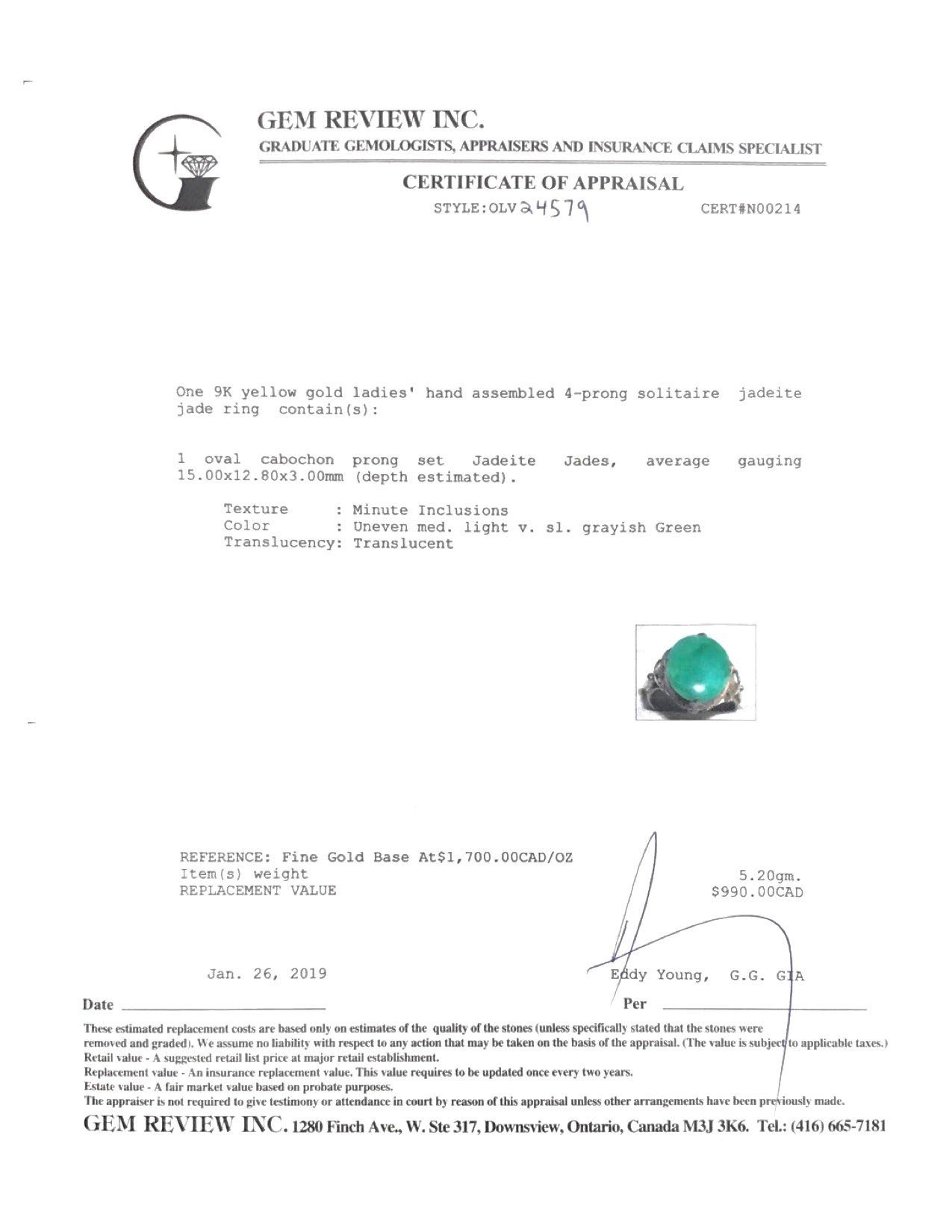 - 1 Oval Cabochon Jade, 15.00 x 12.80 x 3.00 mm