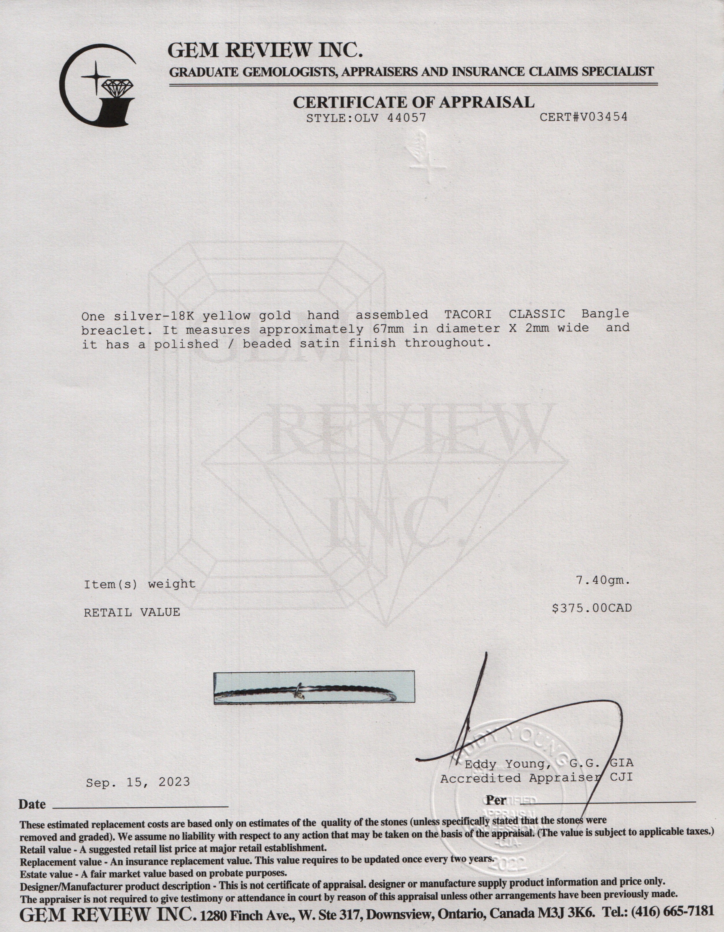 Sterling Silver & 18k Yellow Gold Classic Bangle Bracelet