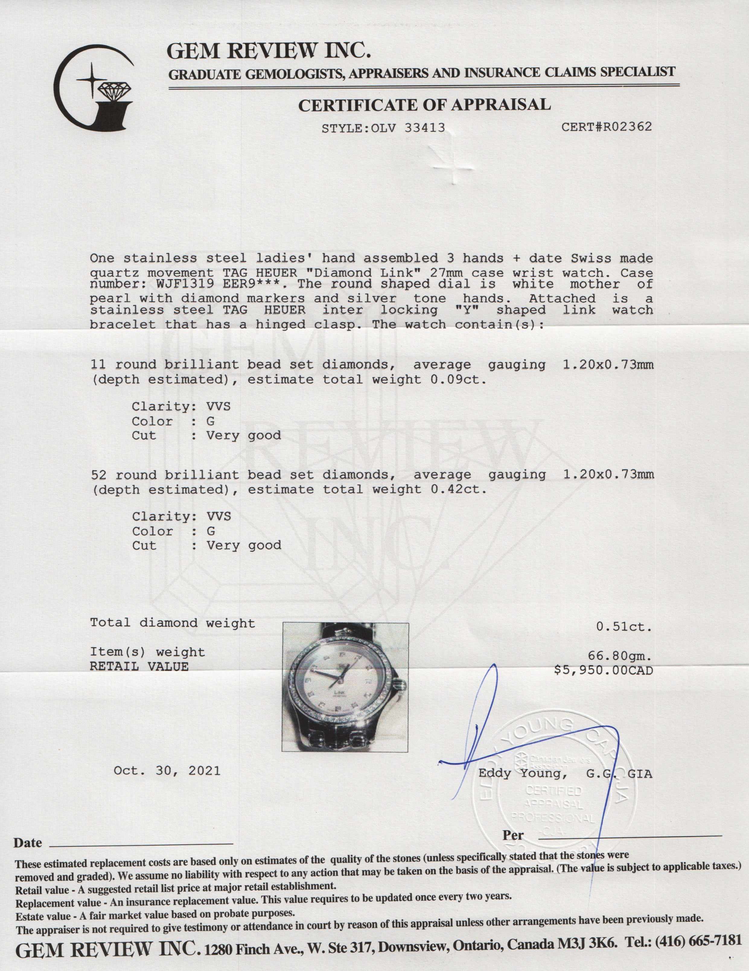 - Mother of Pearl Diamond Dial Containing 11 Round Brilliant Cut Diamonds Totalling Approximately 0.09 ct. of VVS Clarity, G Colour, Very Good Cut