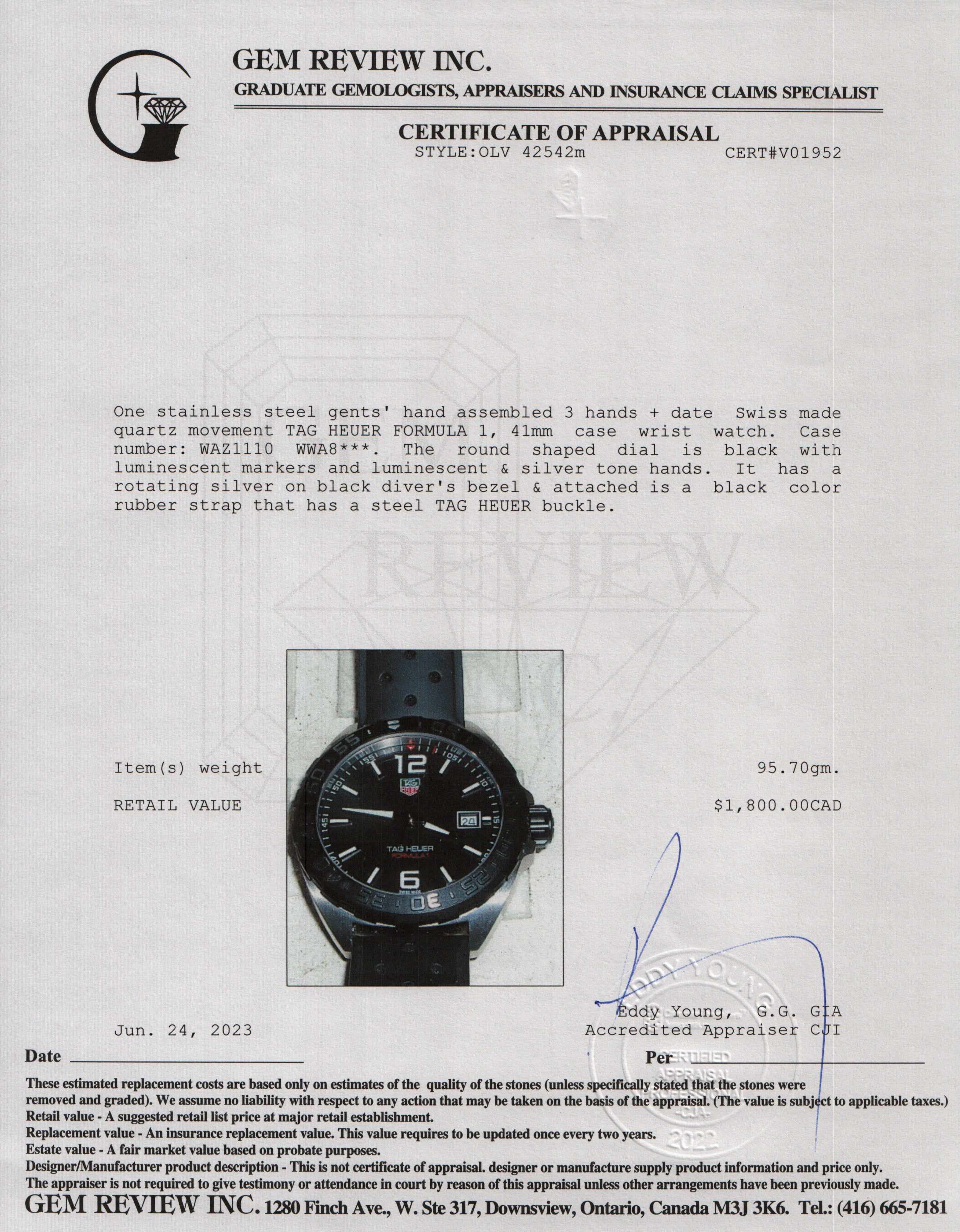 Included Items: Original Tag Heuer Box, Card, Booklet & Gem Review Appraisal
