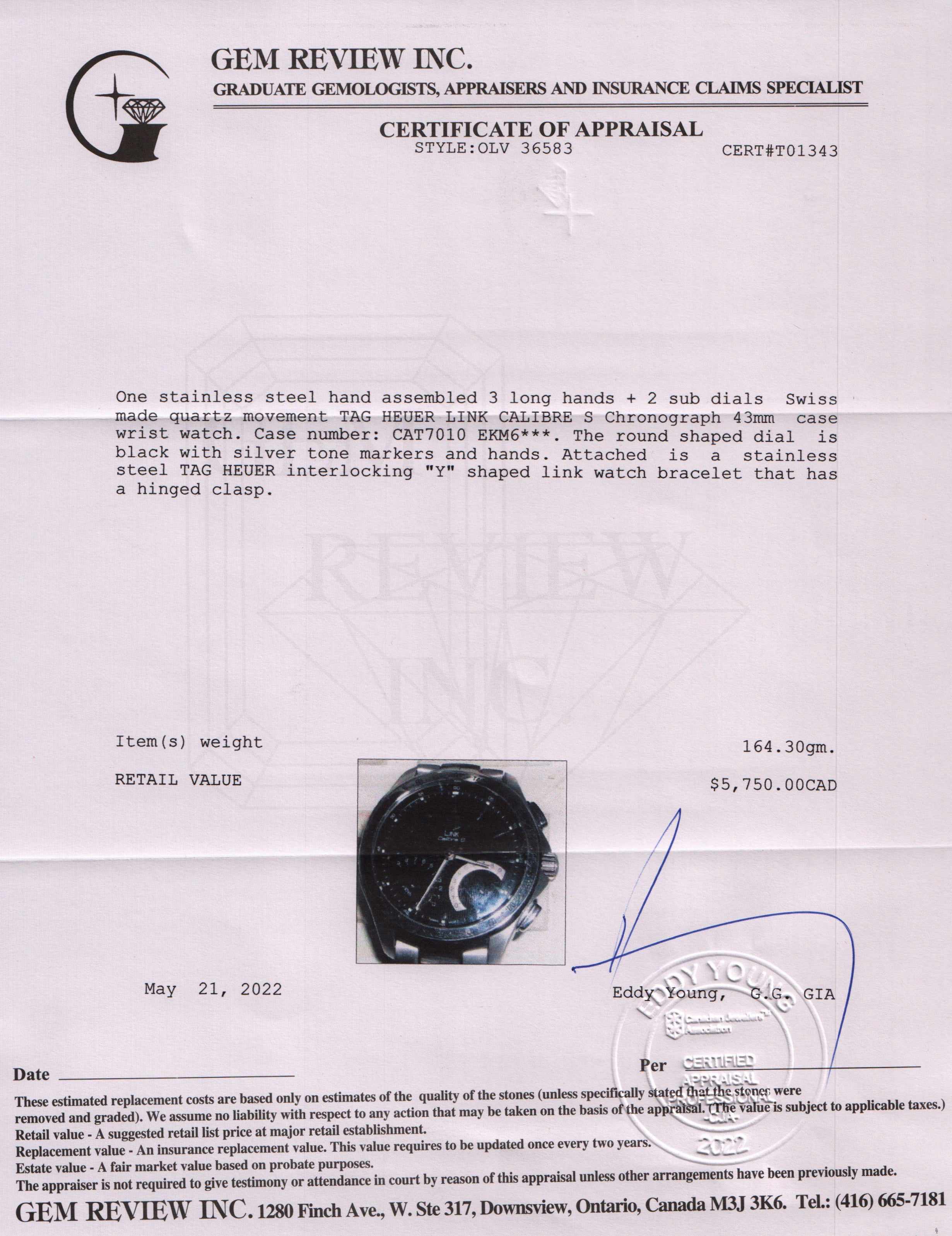 Included Items: Original Tag Heuer Box, Booklets & Gem Review Appraisal