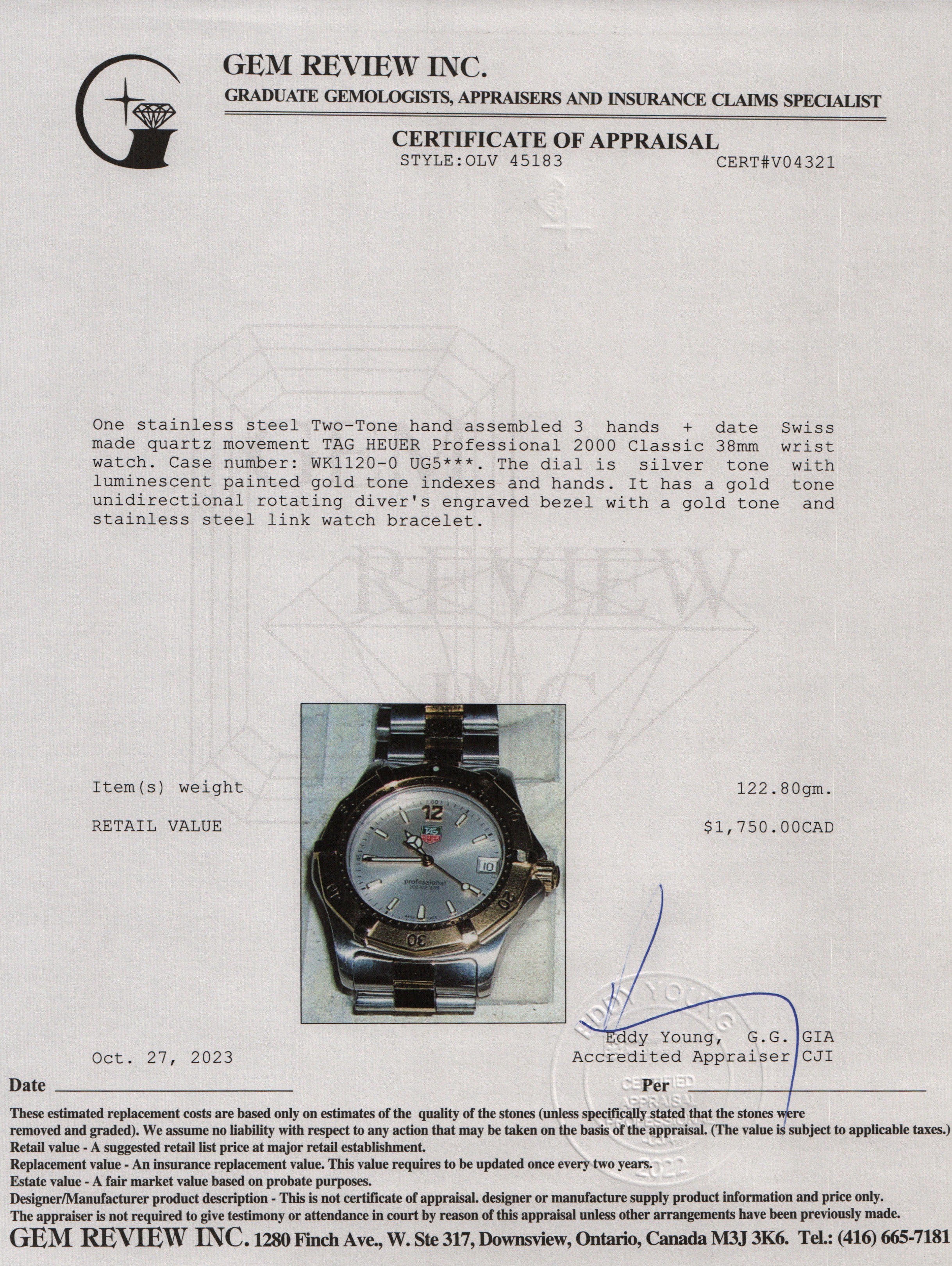 Stainless Steel & Gold Plated 2000 Professional 38MM Watch w/ Box