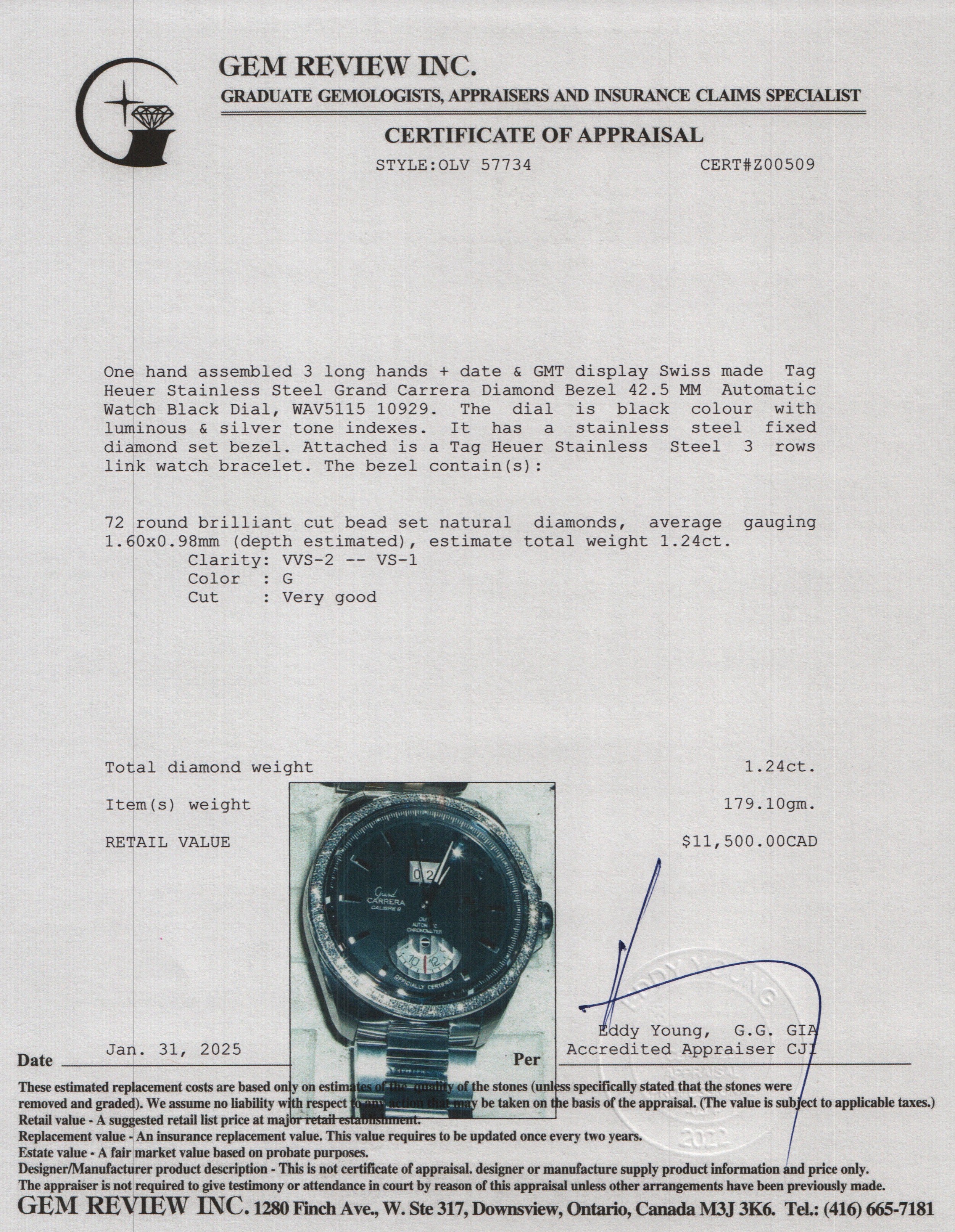 Stainless Steel Grand Carrera Diamond Bezel 42.5 MM Automatic Watch Black Dial WAV5115