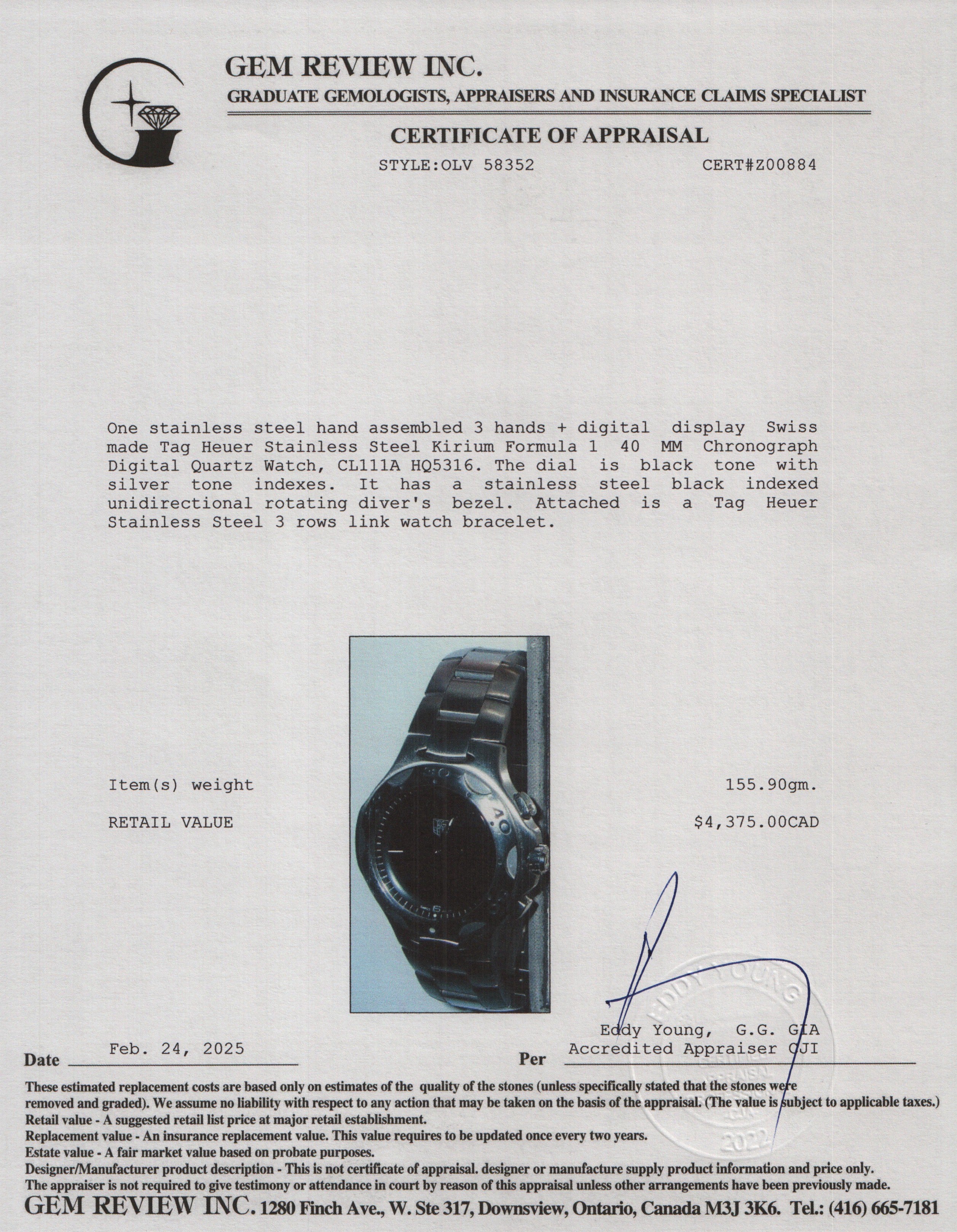 Stainless Steel Kirium Formula 1 40 MM Chronograph Digital Quartz Watch CL111A