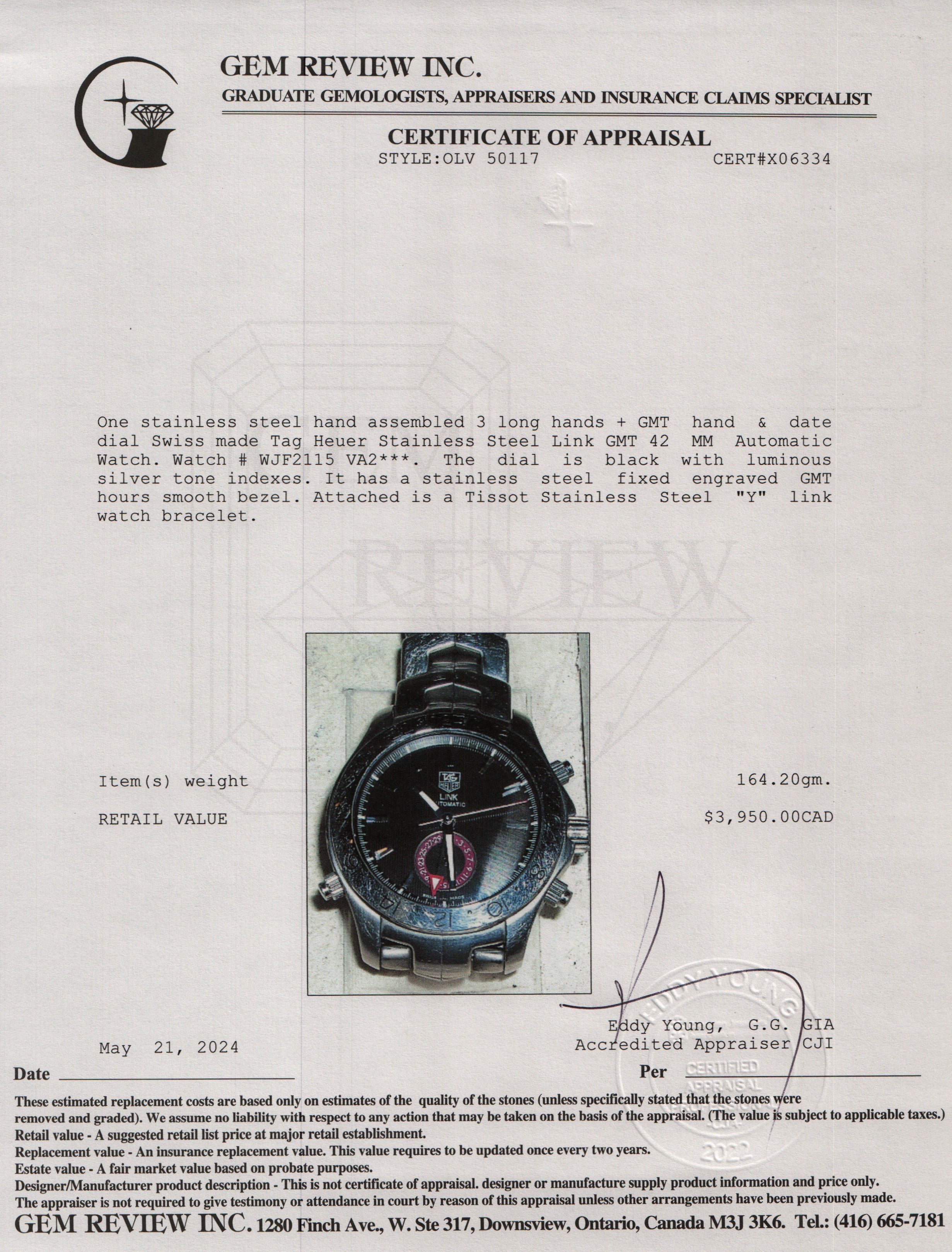 Stainless Steel Link GMT 42 MM Automatic Watch WJF2115 w/ Box & Papers