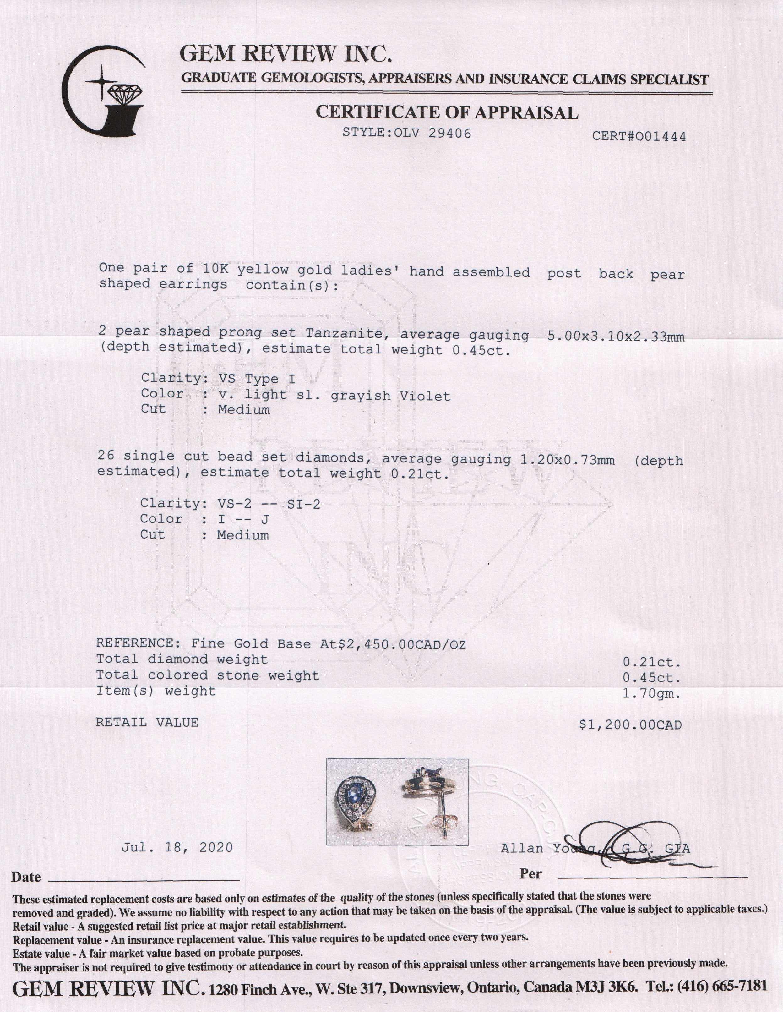 - 2 Pear Shaped Tanzanite Totalling Approximately 0.45 ct.
