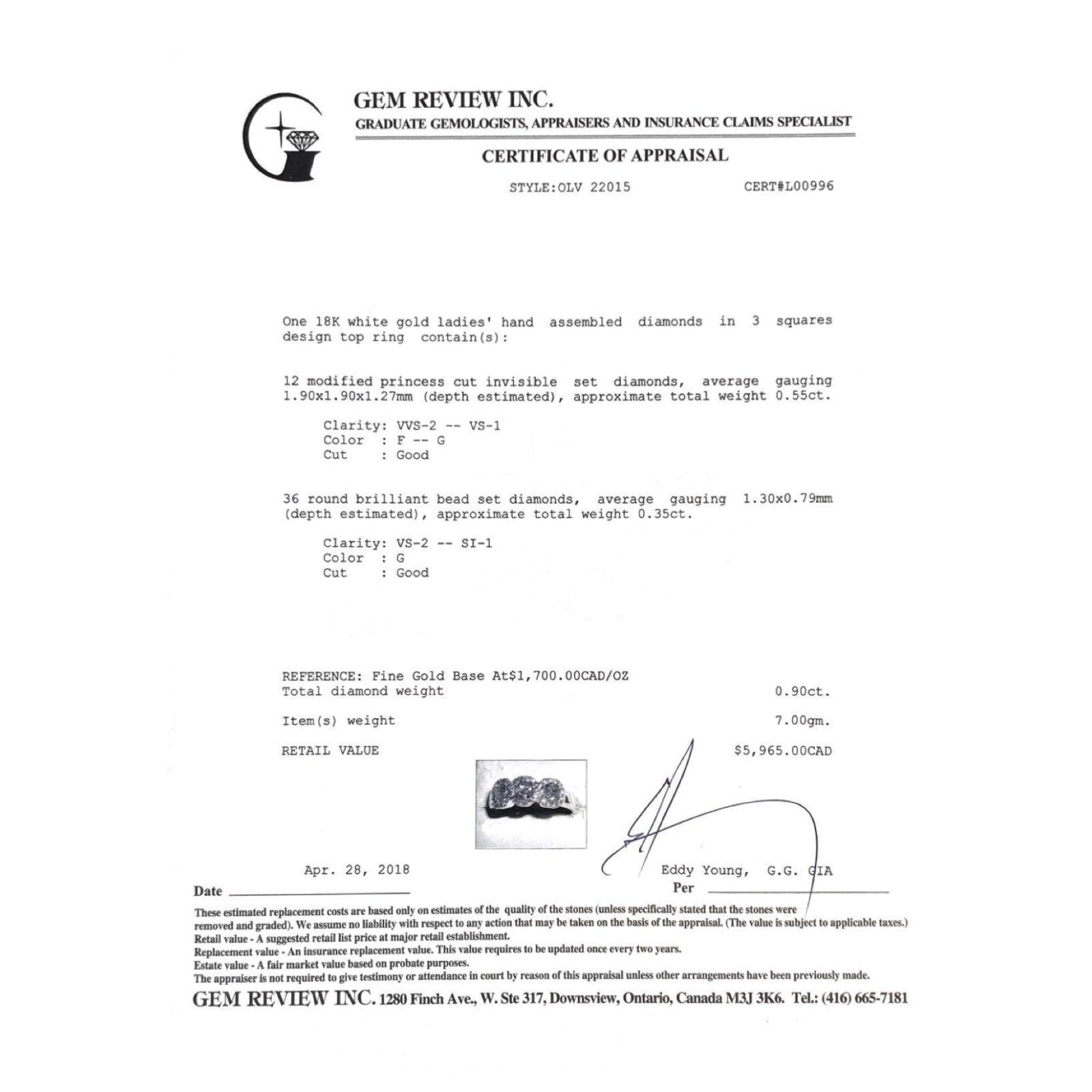 - 12 Invisible Set Modified Princess Cut Diamonds Totalling Approximately 0.55 ct. of VVS2-VS1 Clarity, F-G Colour, Good Cut