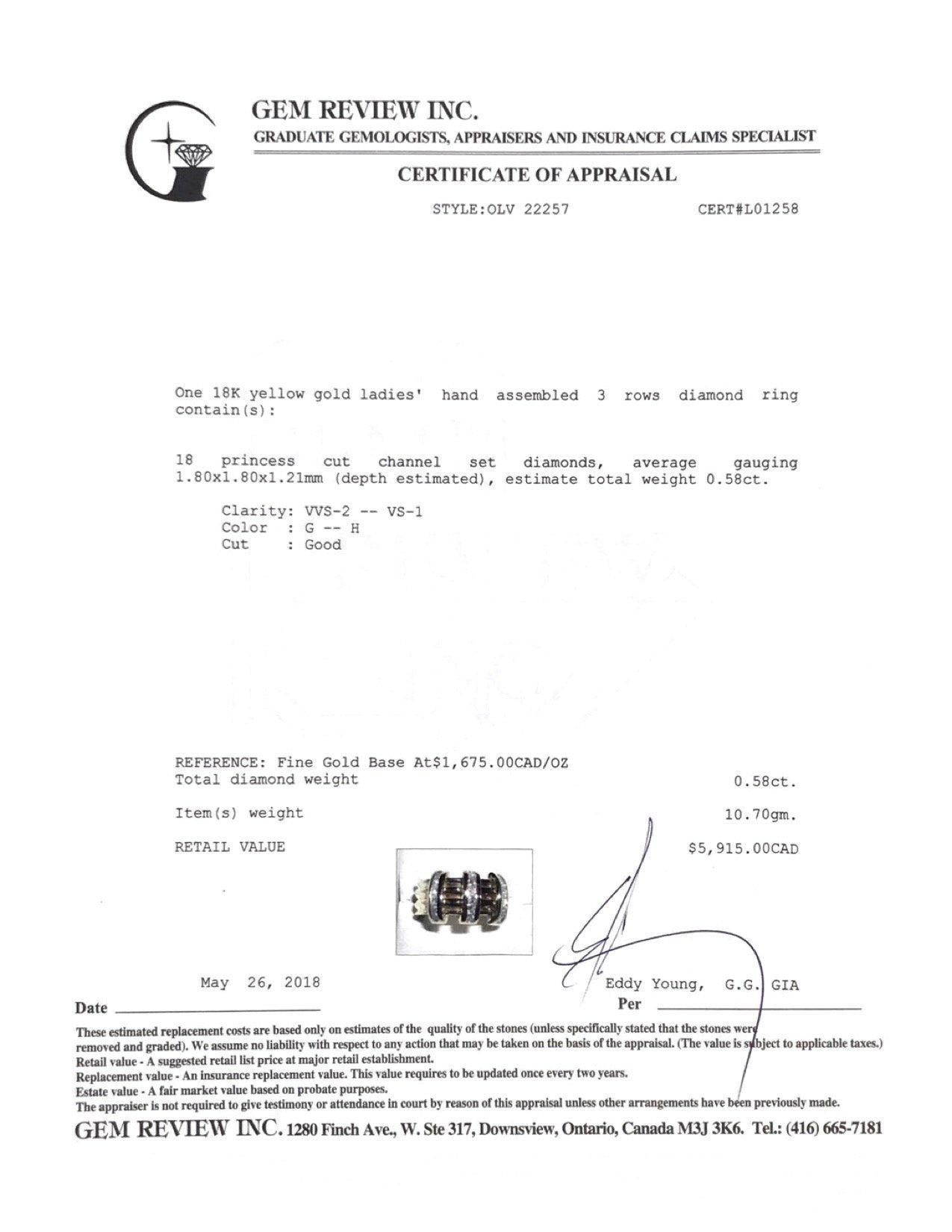 - 18 Princess Cut Channel-Set Diamonds Totalling Approximately 0.58 ct. of VVS2-VS1 Clarity, G-H Colour, Good Cut