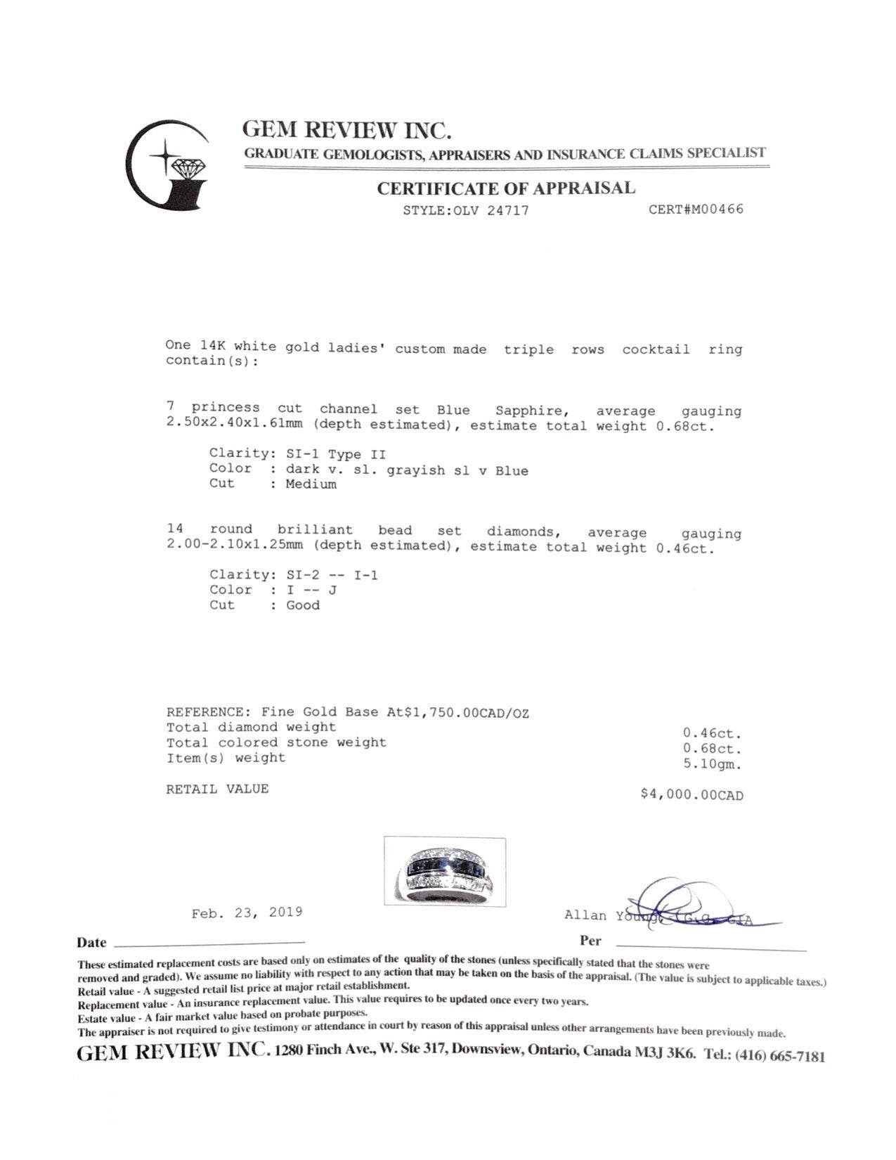 - 7 Princess Cut Blue Sapphires Totalling Approximately 0.68 ct.