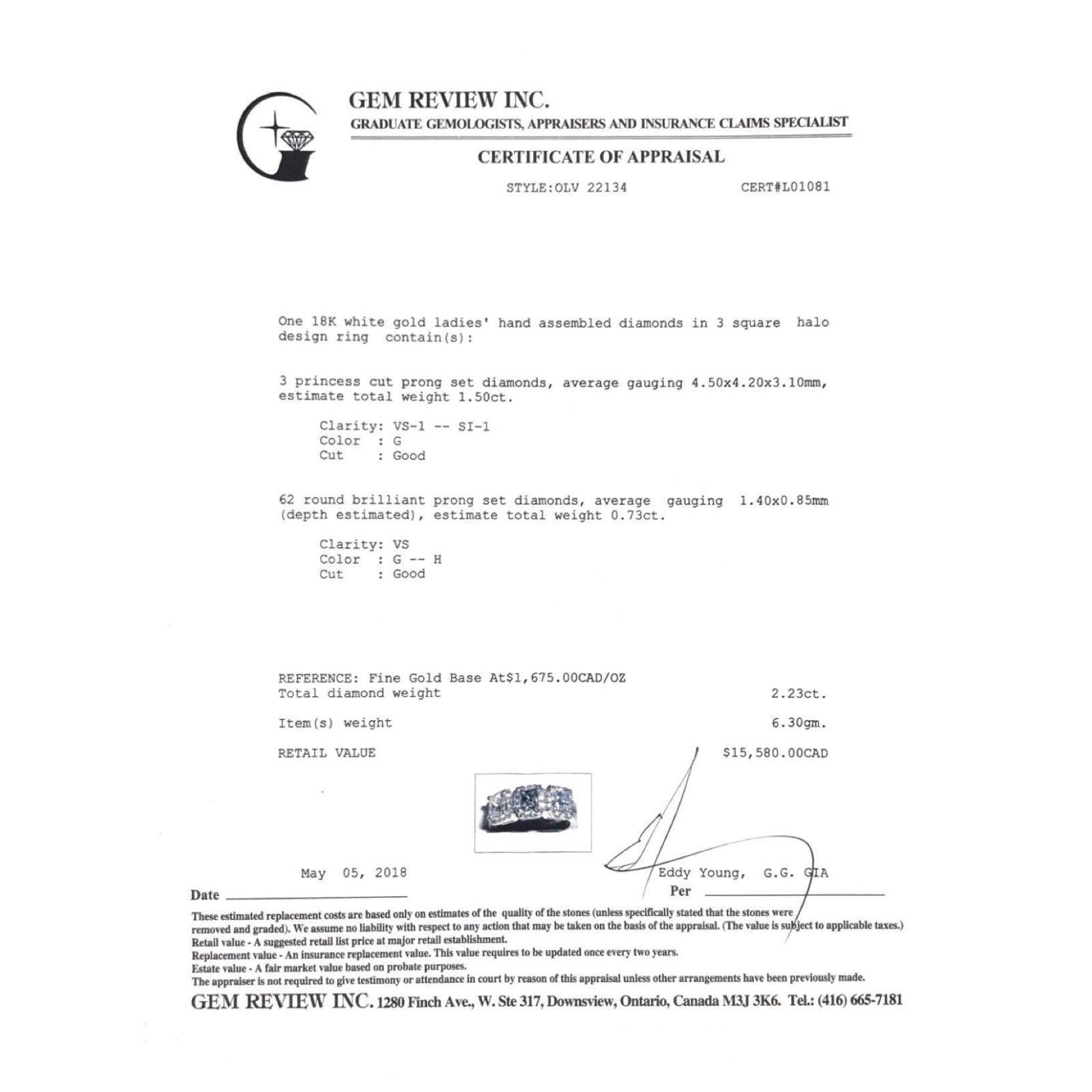 - 3 Princess Cut Diamonds Totalling Approximately 1.50 ct. of VS1-SI1 Clarity, G Colour, Good Cut