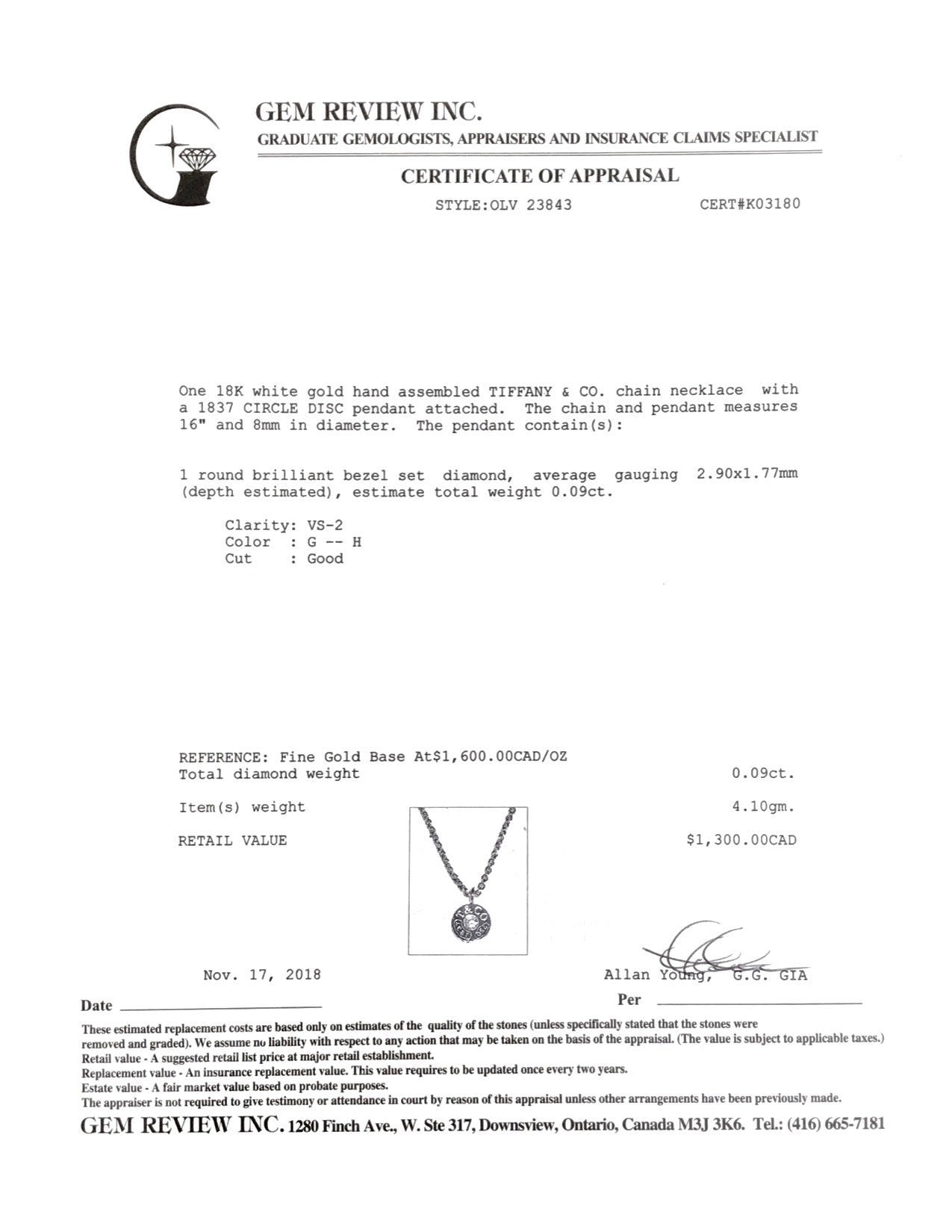 Tiffany & Co. 1837 Circle Diamond Pendant Necklace