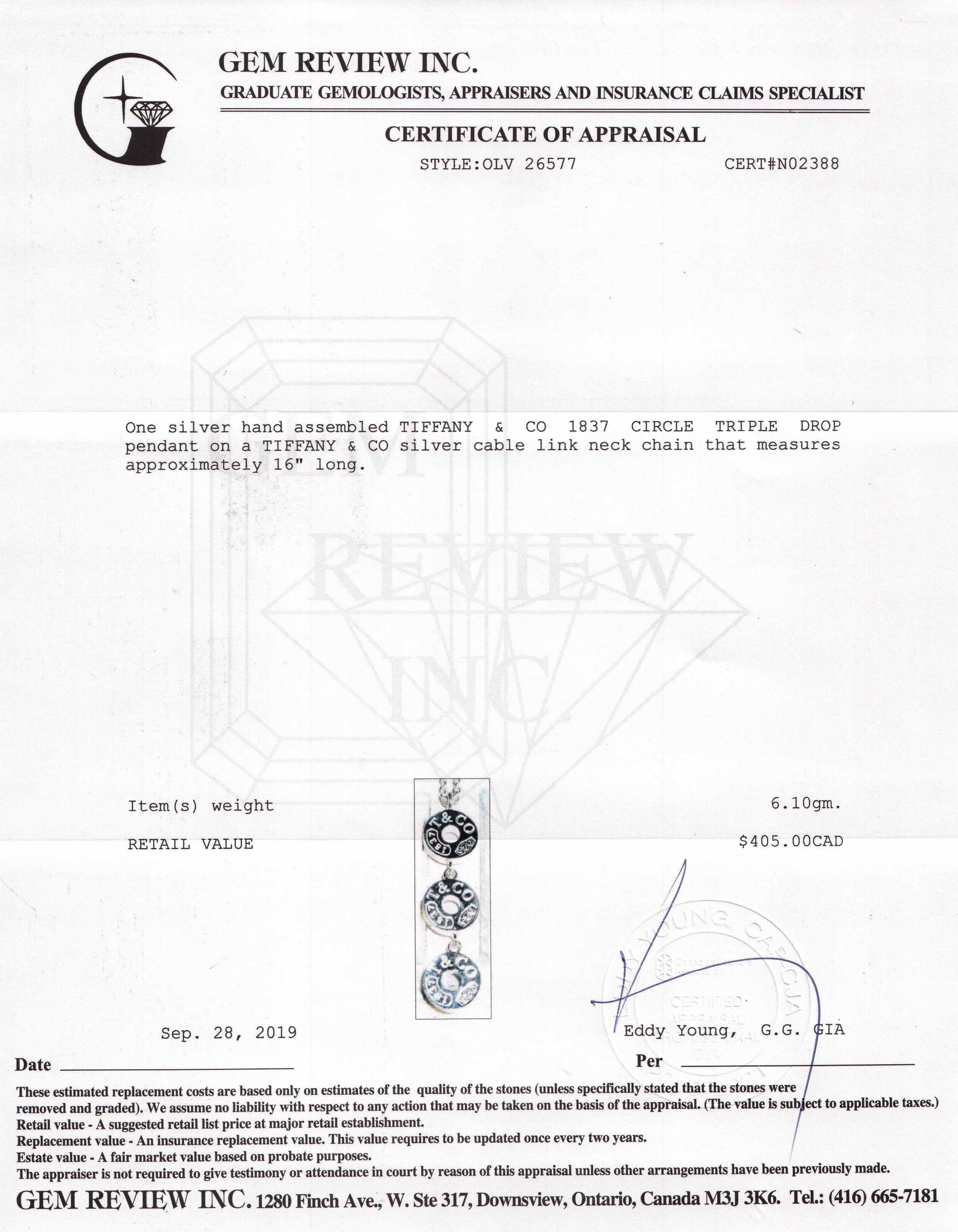 Tiffany & Co. 1837 Circle Triple Drop Pendant Necklace