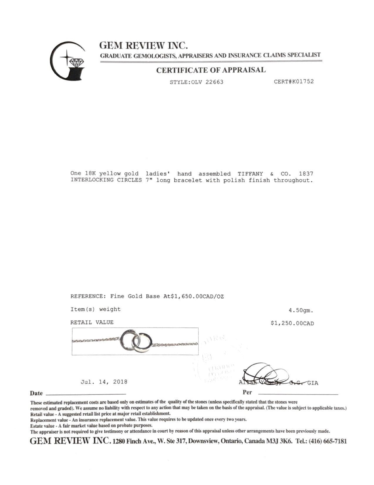 - Signature/Hallmarks: Tiffany & Co. Au750