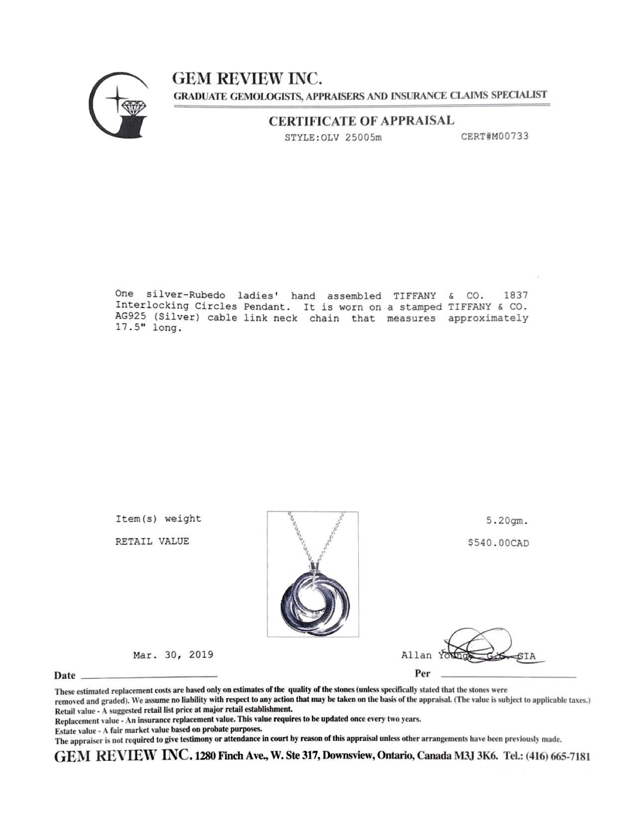 Tiffany & Co. 1837 Interlocking Circles Pendant Necklace