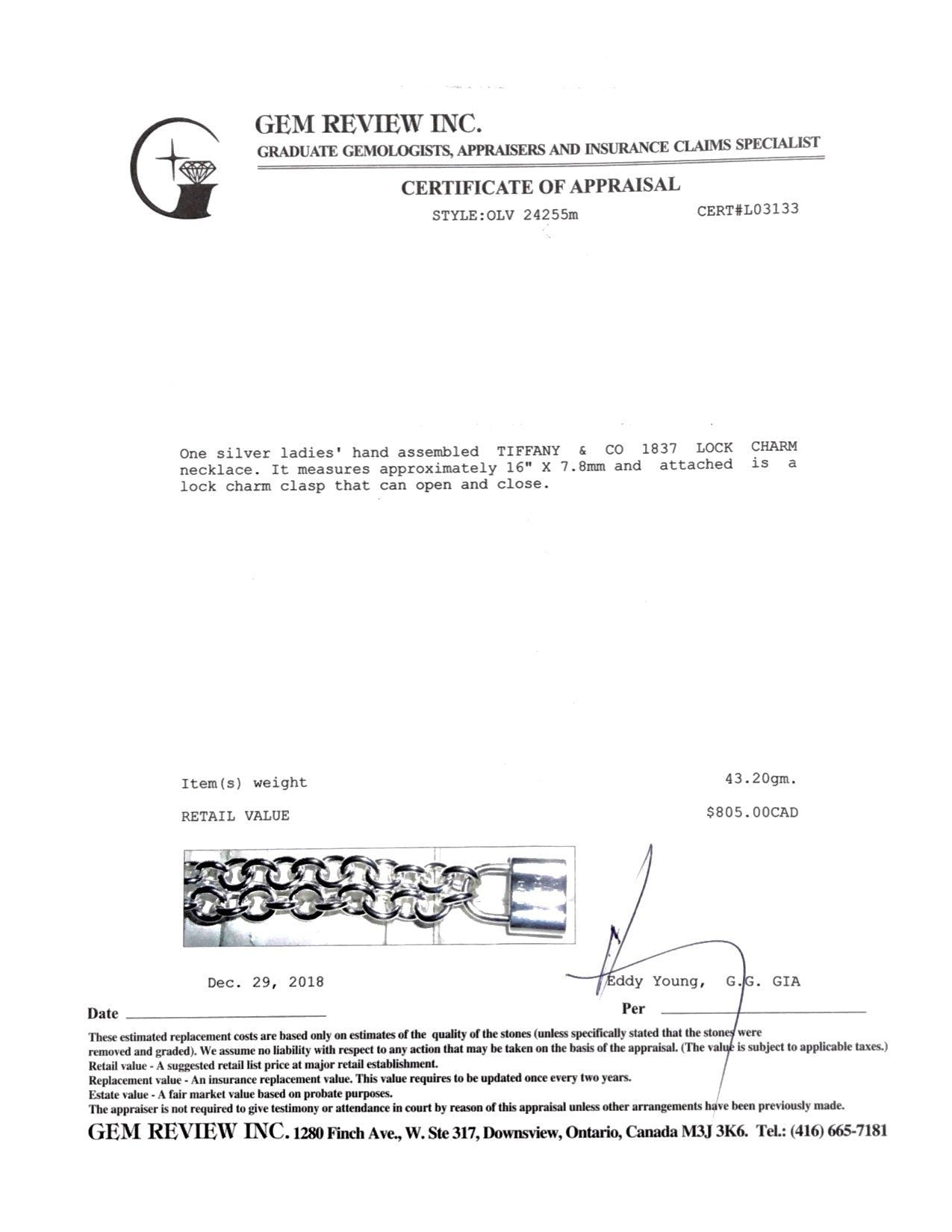 Tiffany & Co. 1837 Lock Pendant Necklace