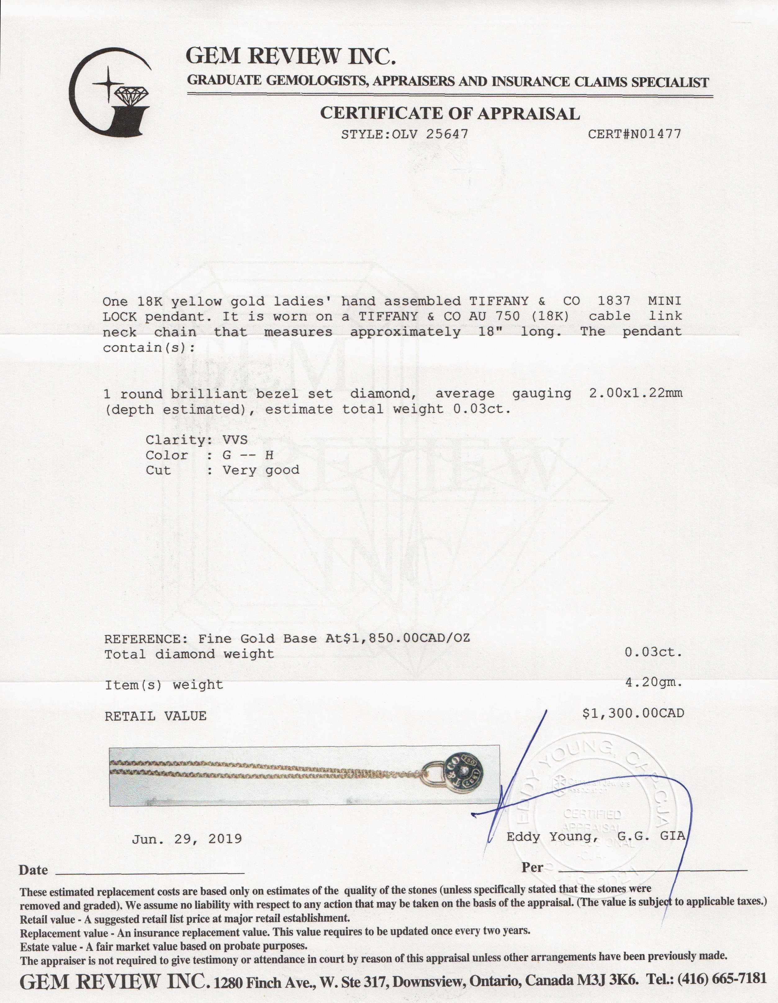 Tiffany & Co. 1837 Mini Round Lock Pendant Necklace with Diamond