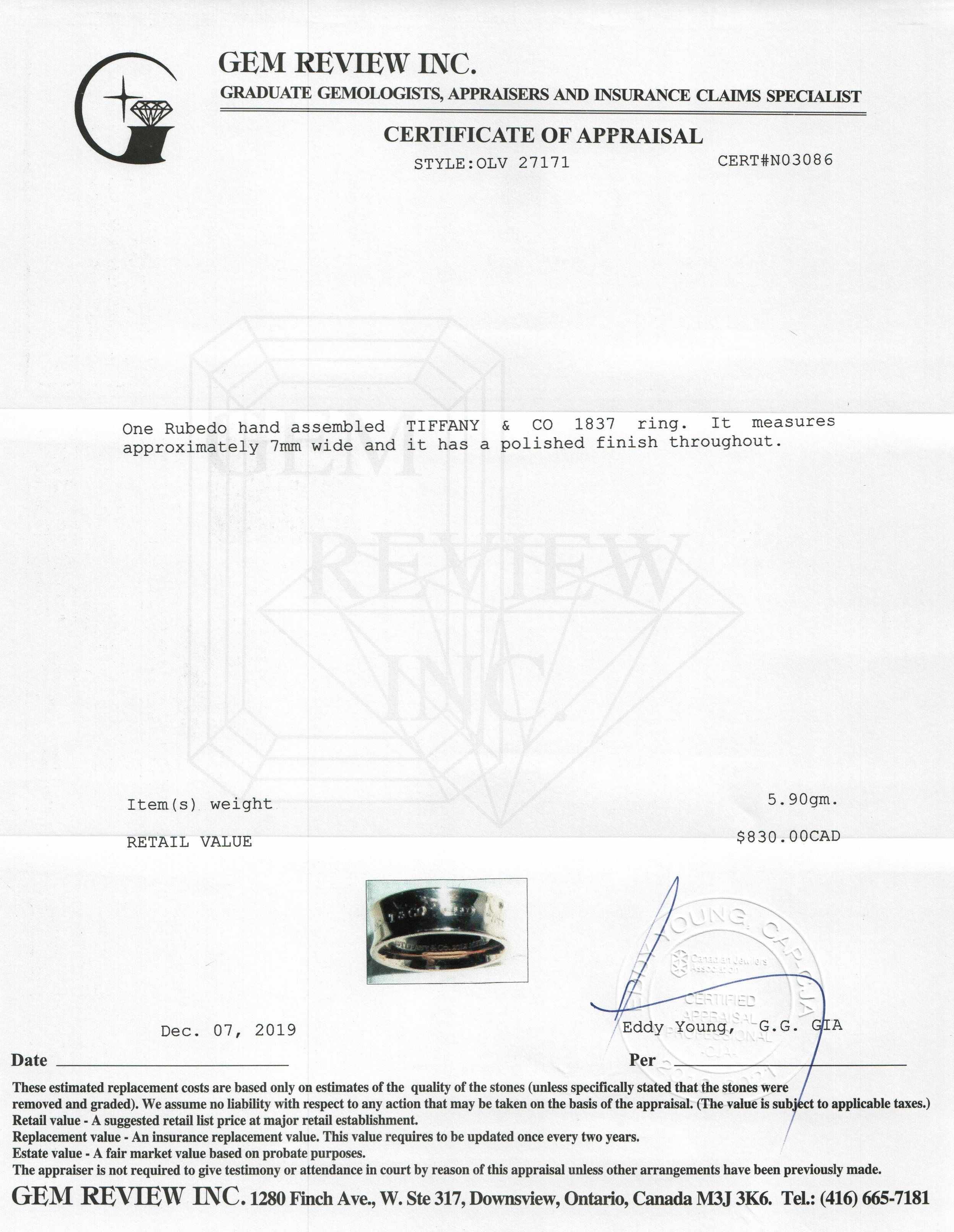 - Signature/Hallmarks : Tiffany & Co. 2012 Metal