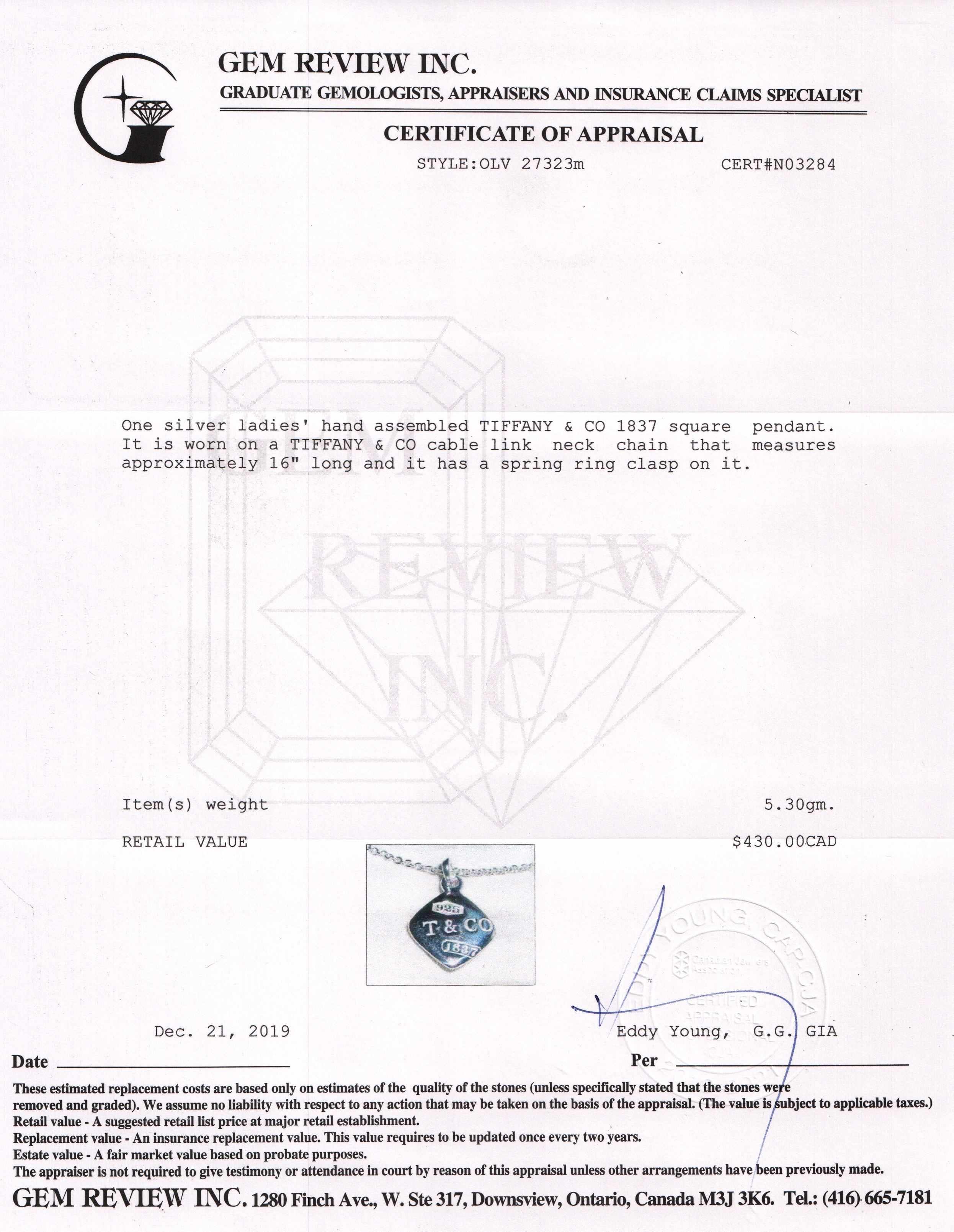 Tiffany & Co. 1837 Square Pendant Necklace
