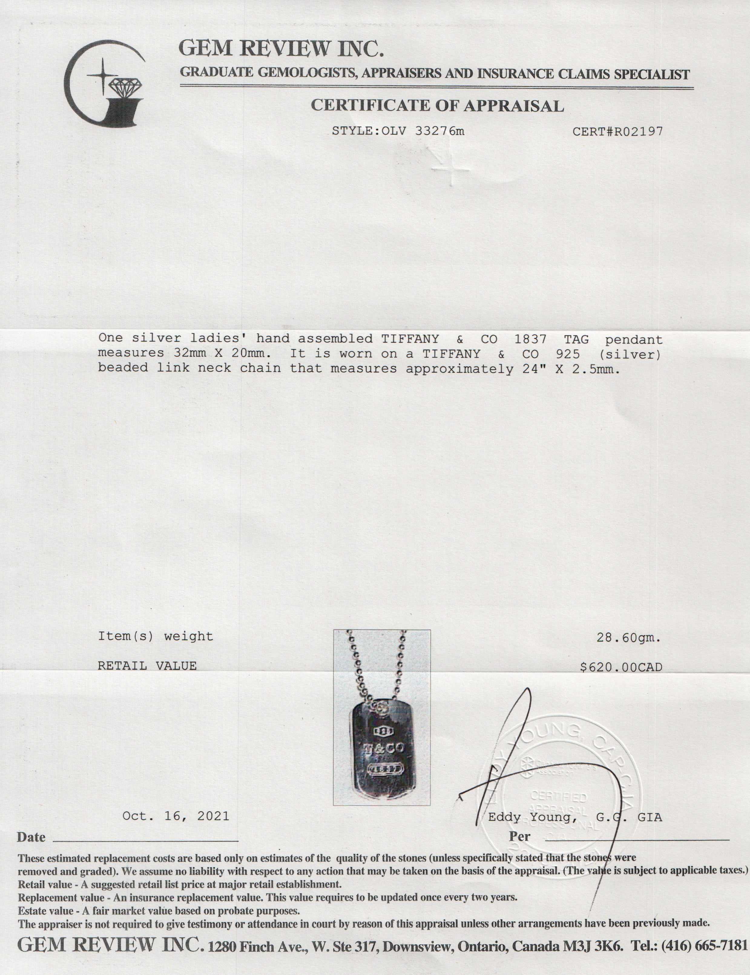Tiffany & Co. 1837 Tag Pendant Necklace