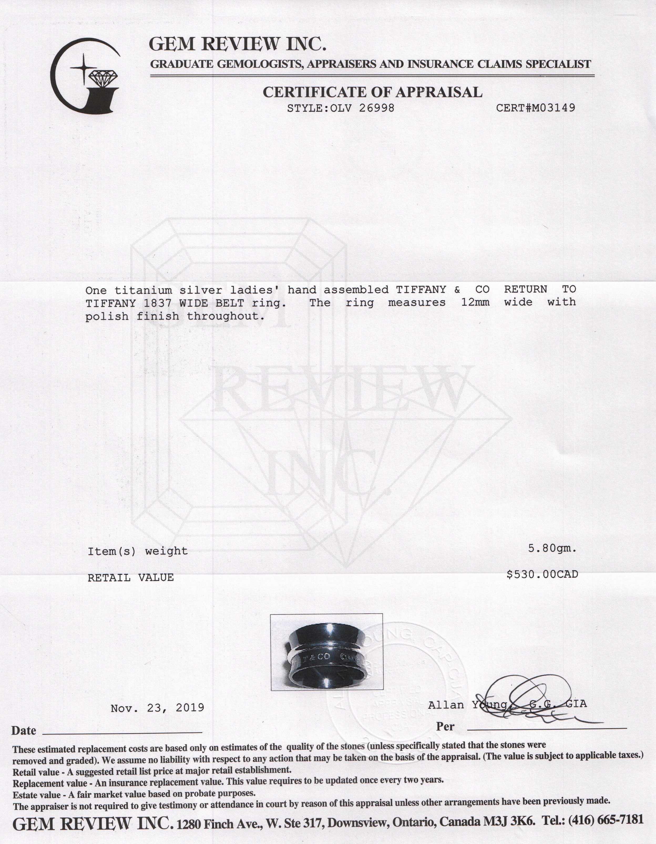 Tiffany & Co. 1837 Titanium & Sterling Silver Wide Belt Ring