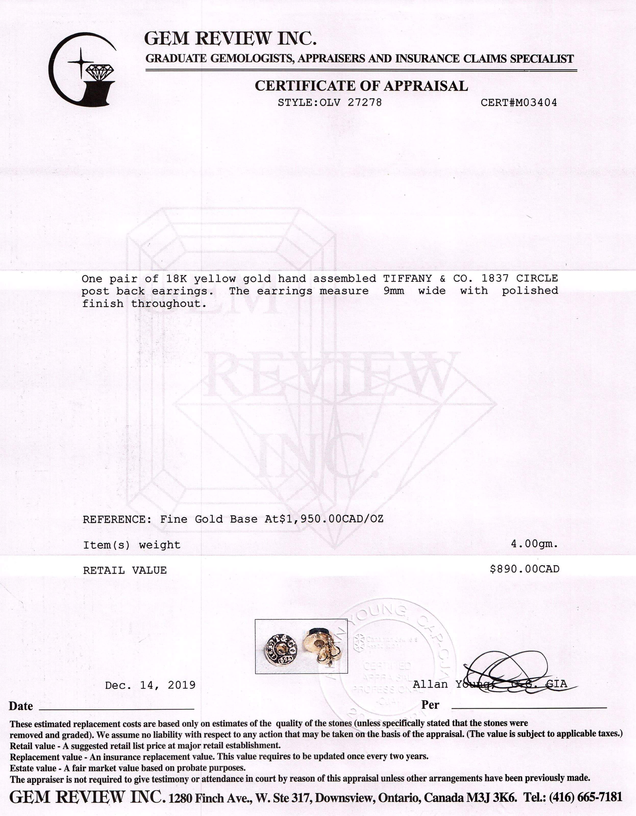Tiffany & Co. 18k Gold 1837 Circle Earrings
